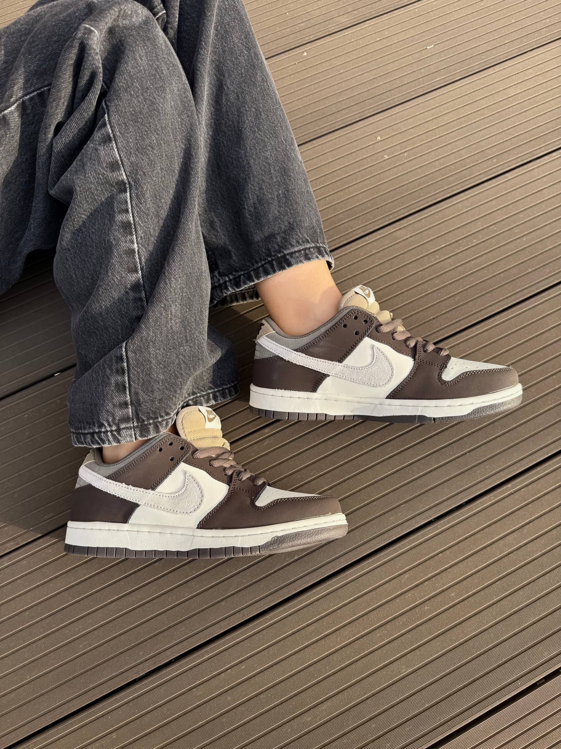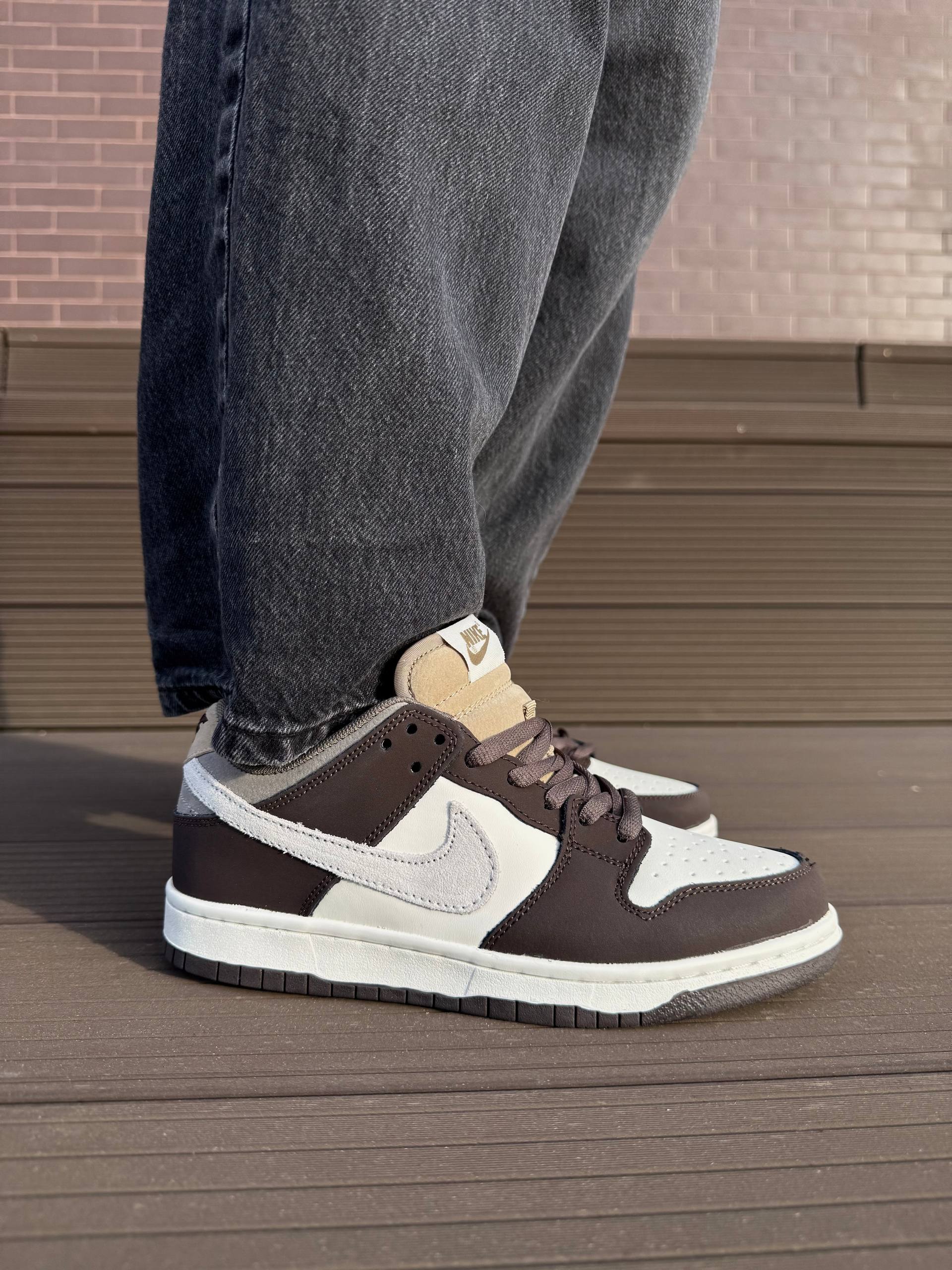 Nike SB Dunk Low Brown Beige — стильна модель із поєднанням коричневих та бежевих тонів, що створює теплий, нейтральний вигляд, який легко поєднується з різними образами.