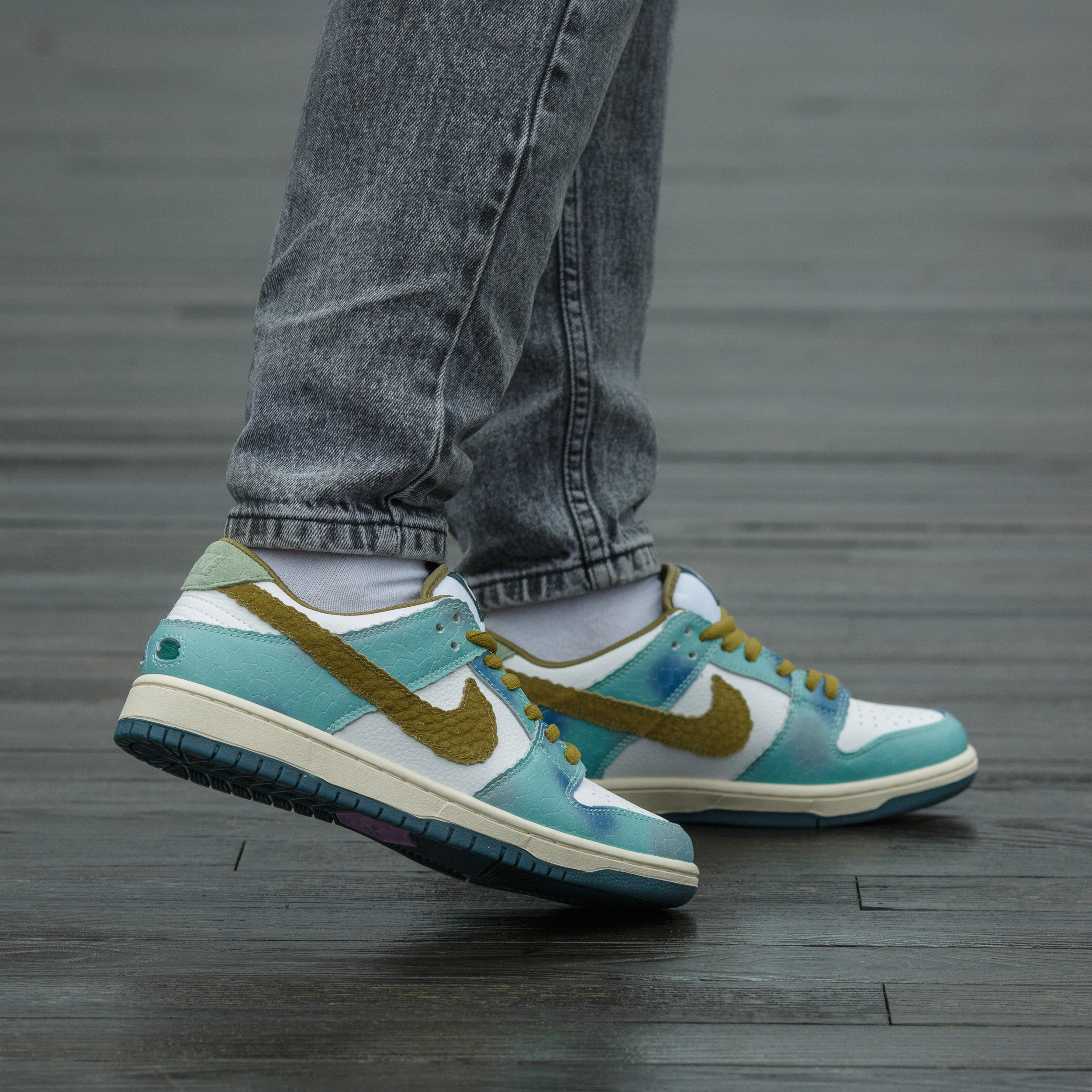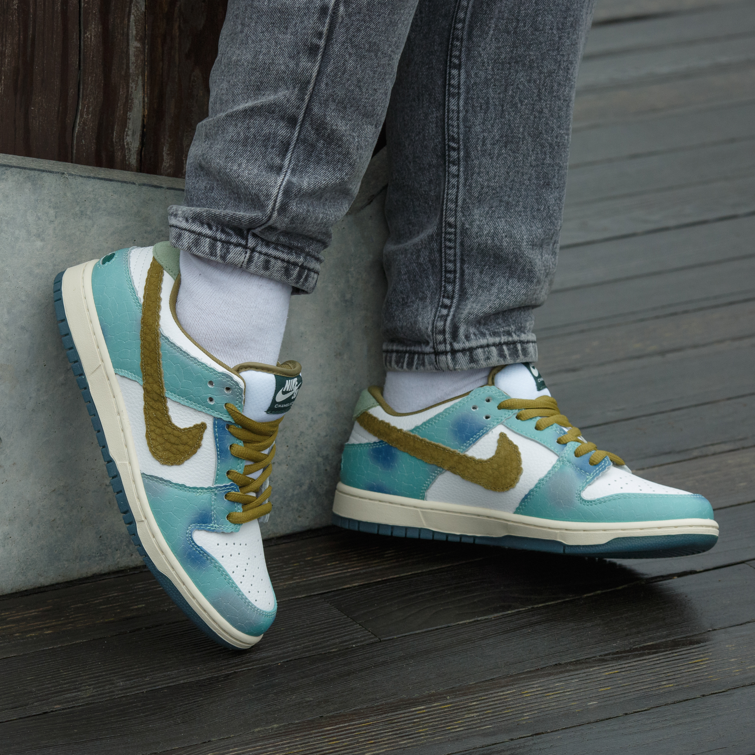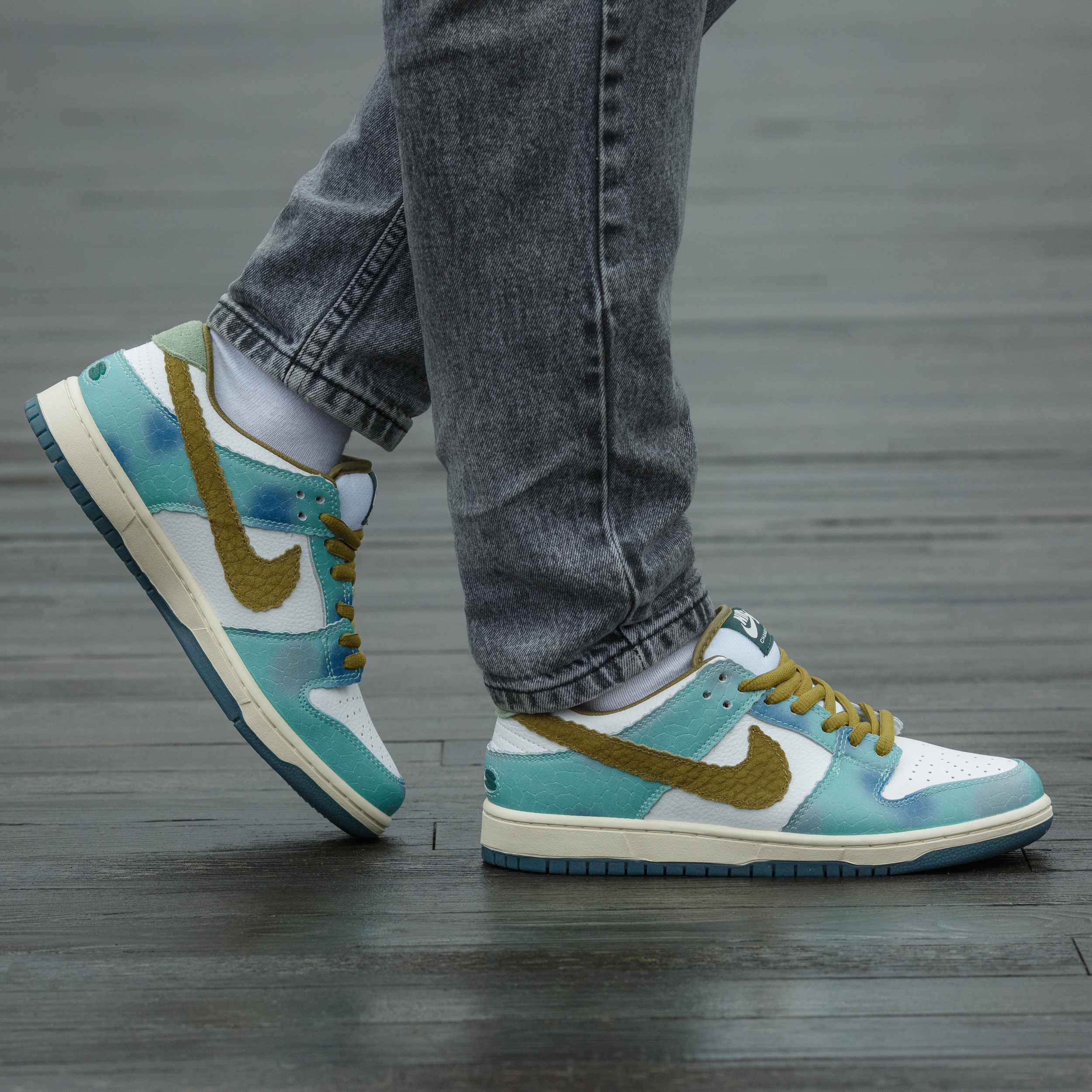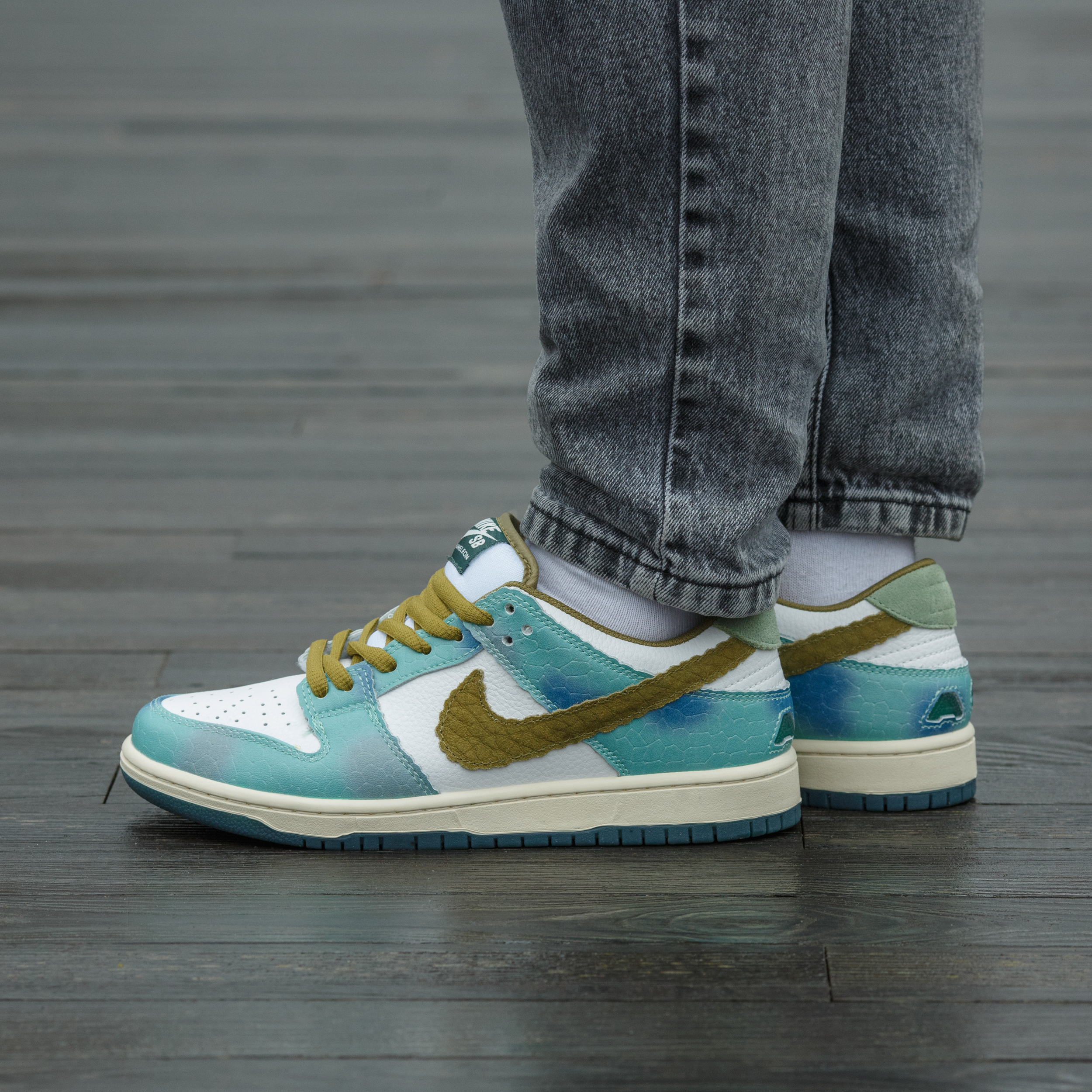 Nike SB Dunk Reptile — стильні та міцні скейт-кросівки з шкіряним верхом, які забезпечують надійне зчеплення, комфорт та підтримку під час щоденного носіння і катання на різних міських поверхнях.