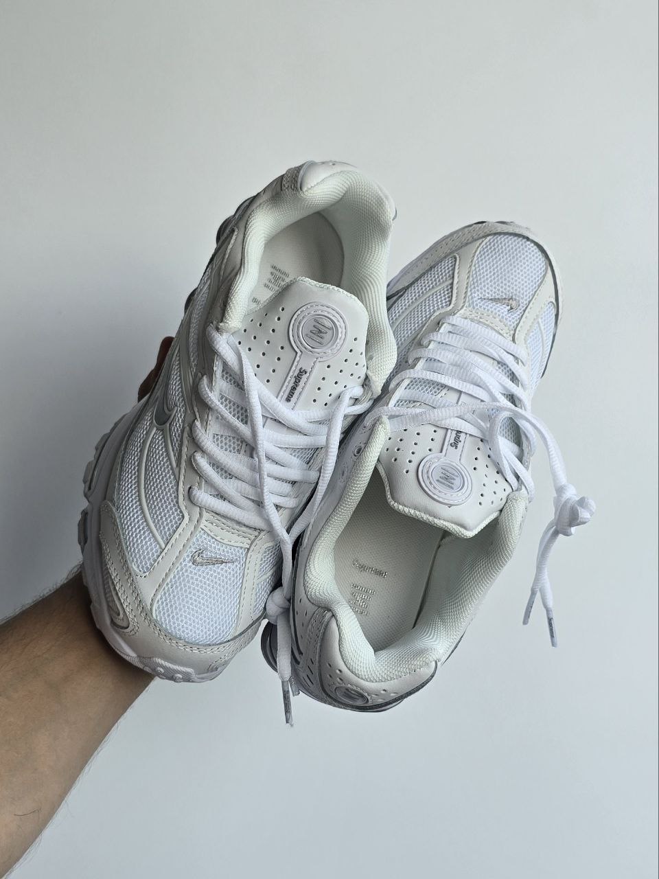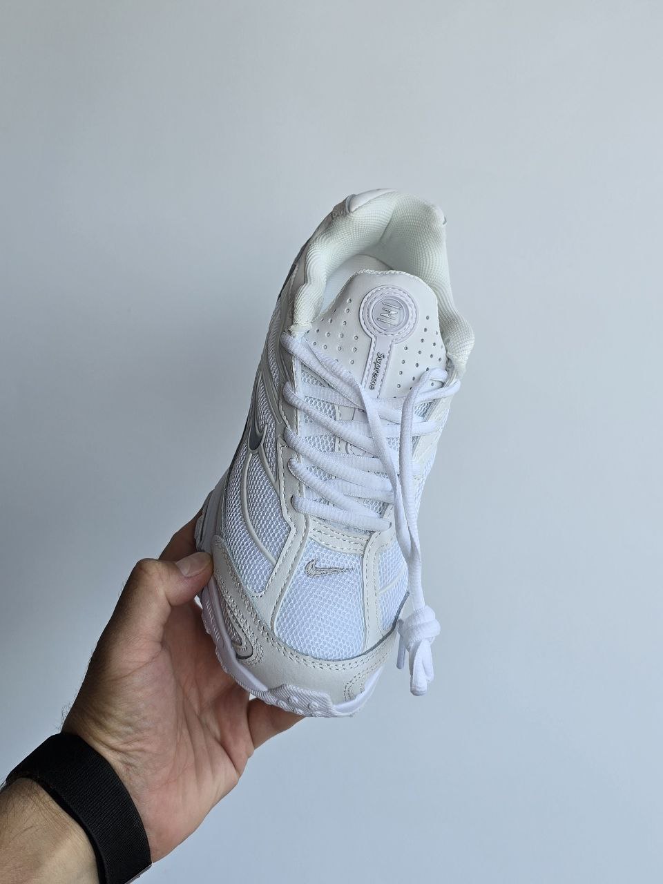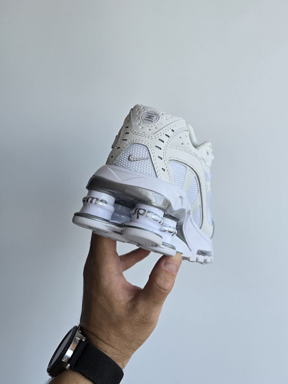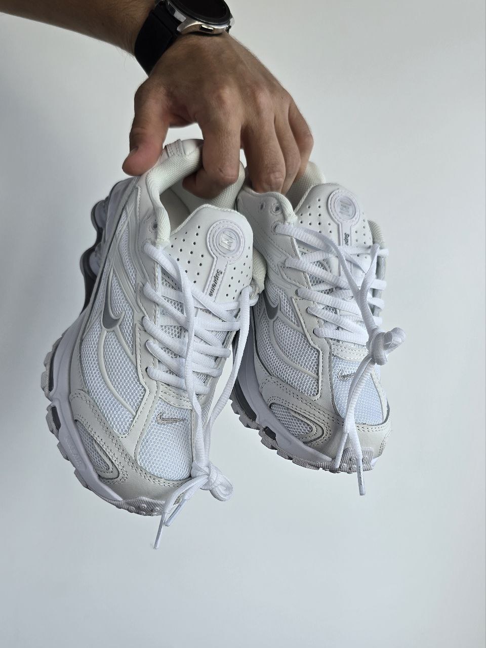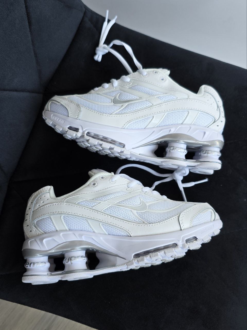 Nike Shox Ride 2 SP × Supreme White — стильна колаборація з фірмовими амортизаційними стовпчиками Shox, що поєднує футуристичний дизайн, преміальні матеріали та комфорт для яскравих міських образів.