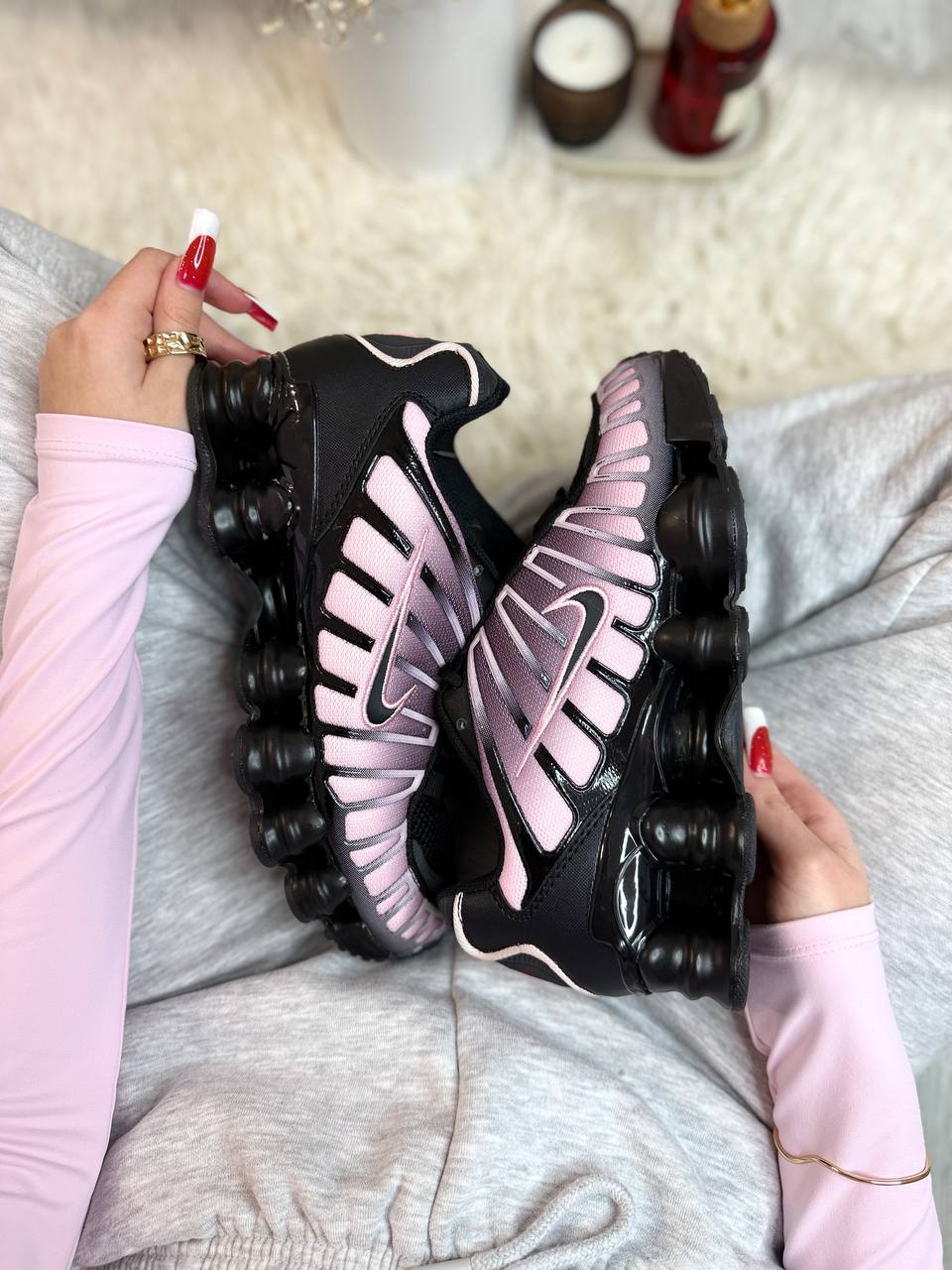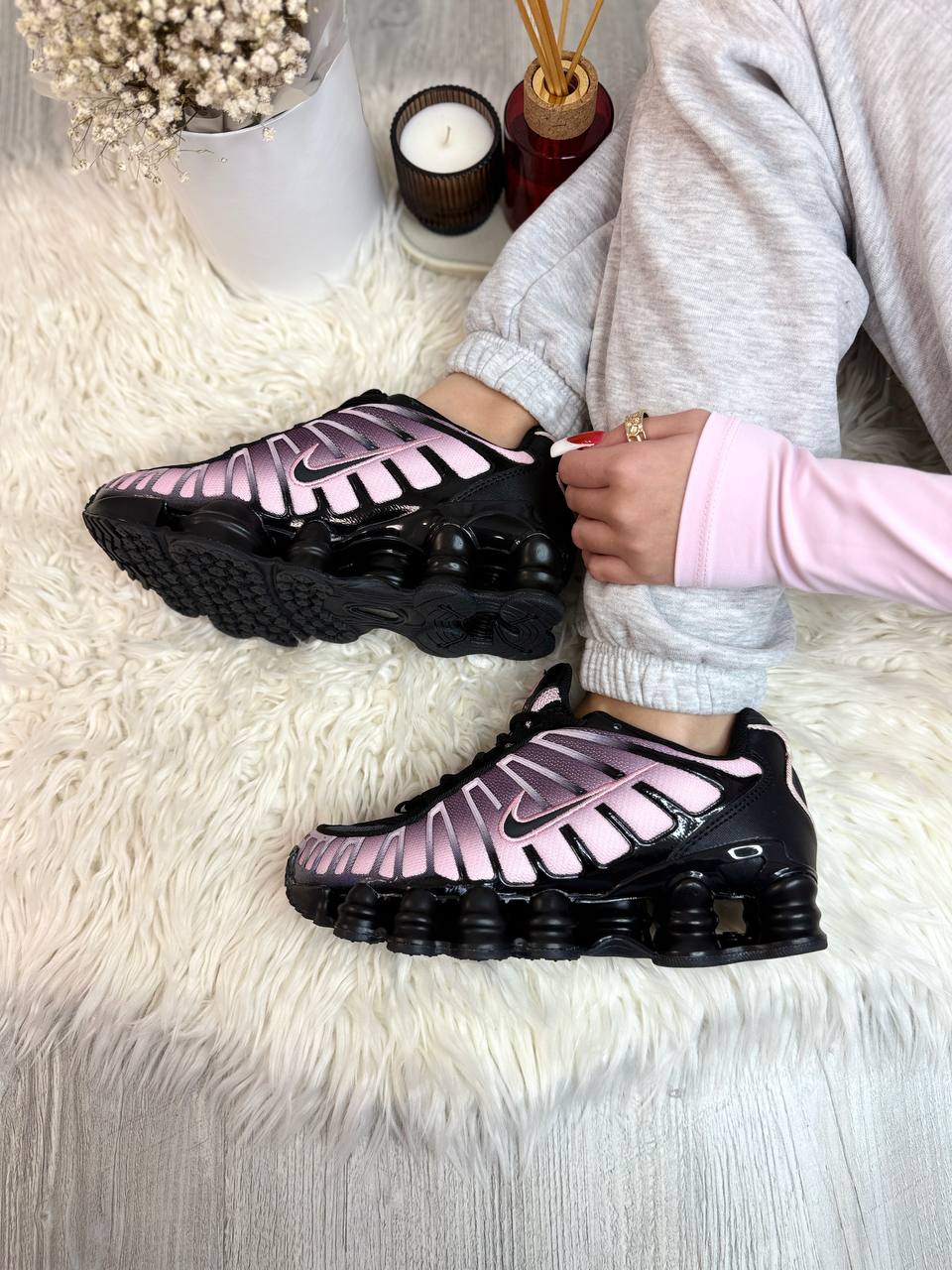 Nike Shox TL Black Pink — контрастна модель у чорному кольорі з рожевими акцентами та футуристичним силуетом, що поєднує динамічний вигляд, комфортну посадку та яскравий повсякденний стиль.