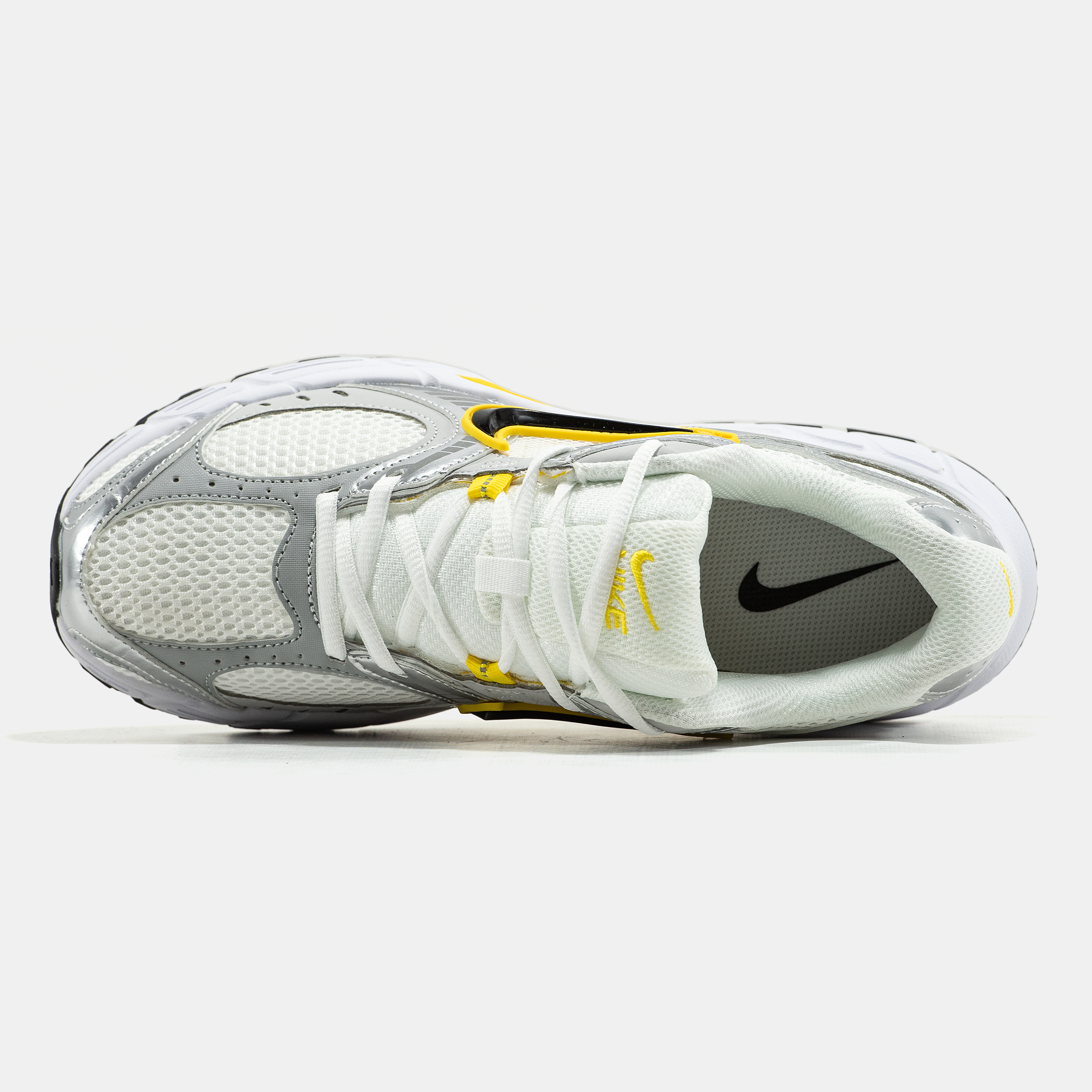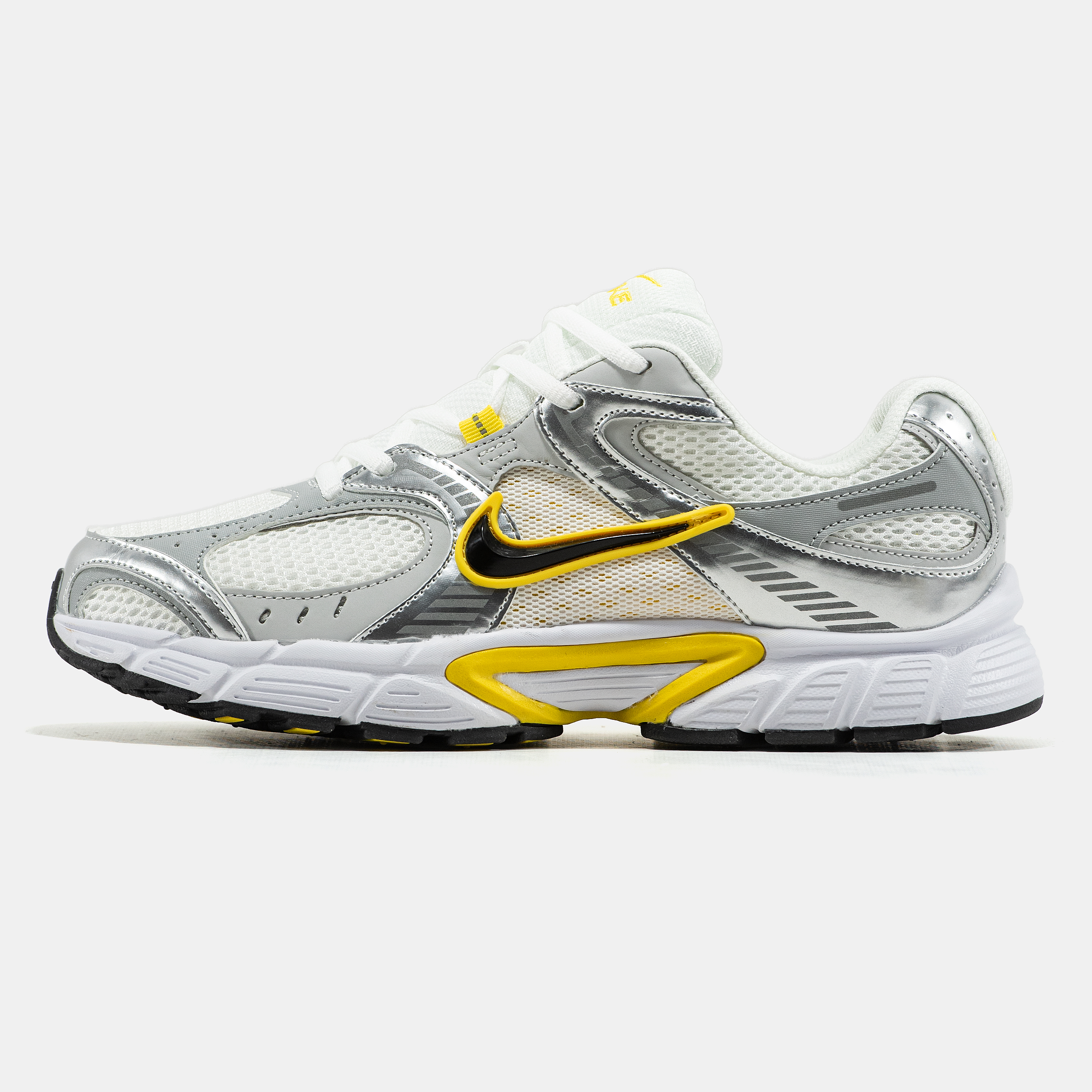 Nike V5 RNR White Metallic Silver Yellow — стильна модель із виразним, але збалансованим силуетом, що поєднує спортивний характер, комфортну посадку та універсальність для щоденного носіння.