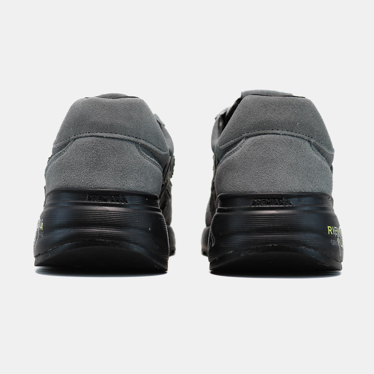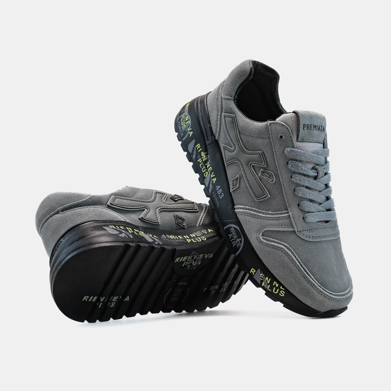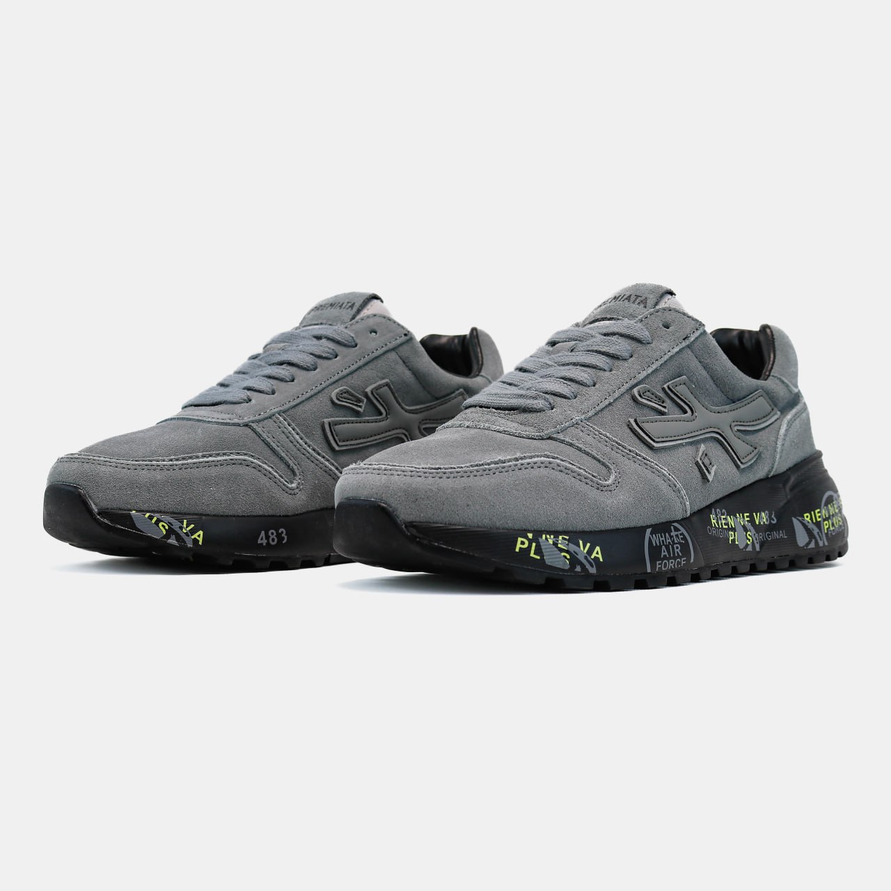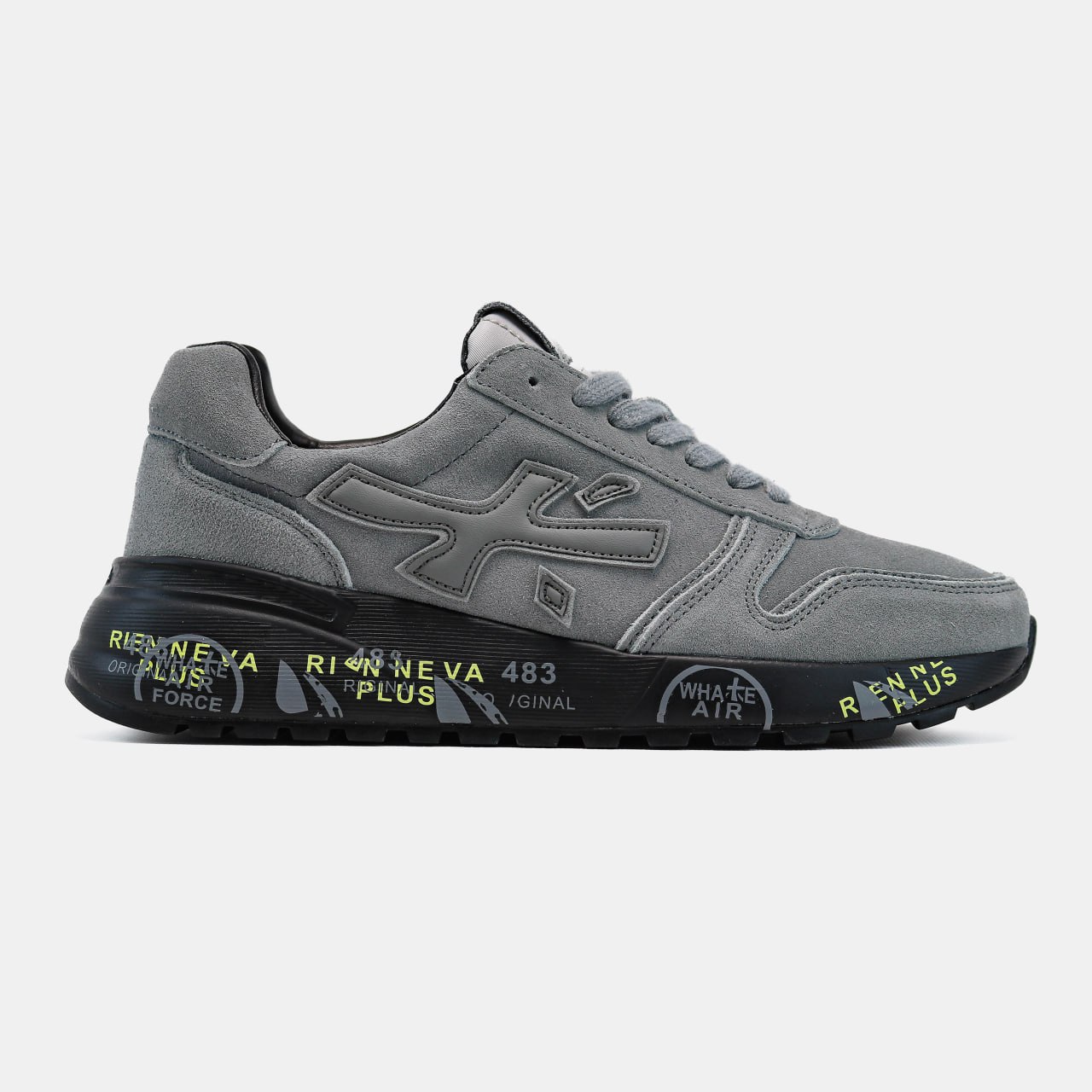 Premiata Mick Grey Black — повсякденні кросівки з м’якою устілкою та амортизованою підошвою, що забезпечують комфорт, стабільність і стриманий міський стиль для щоденного носіння.