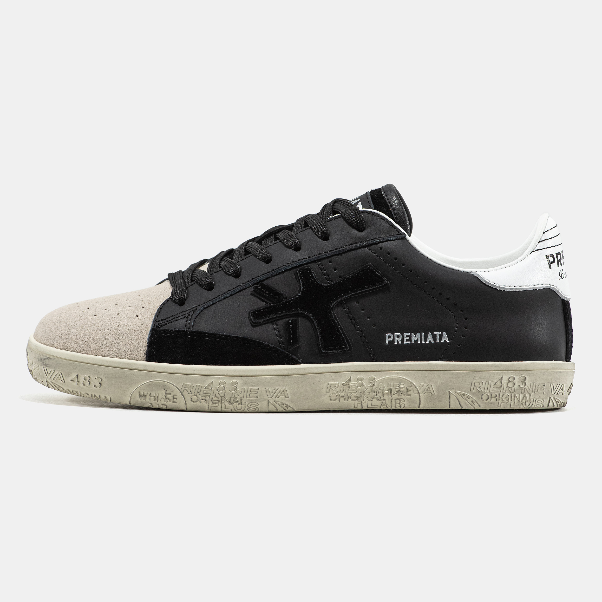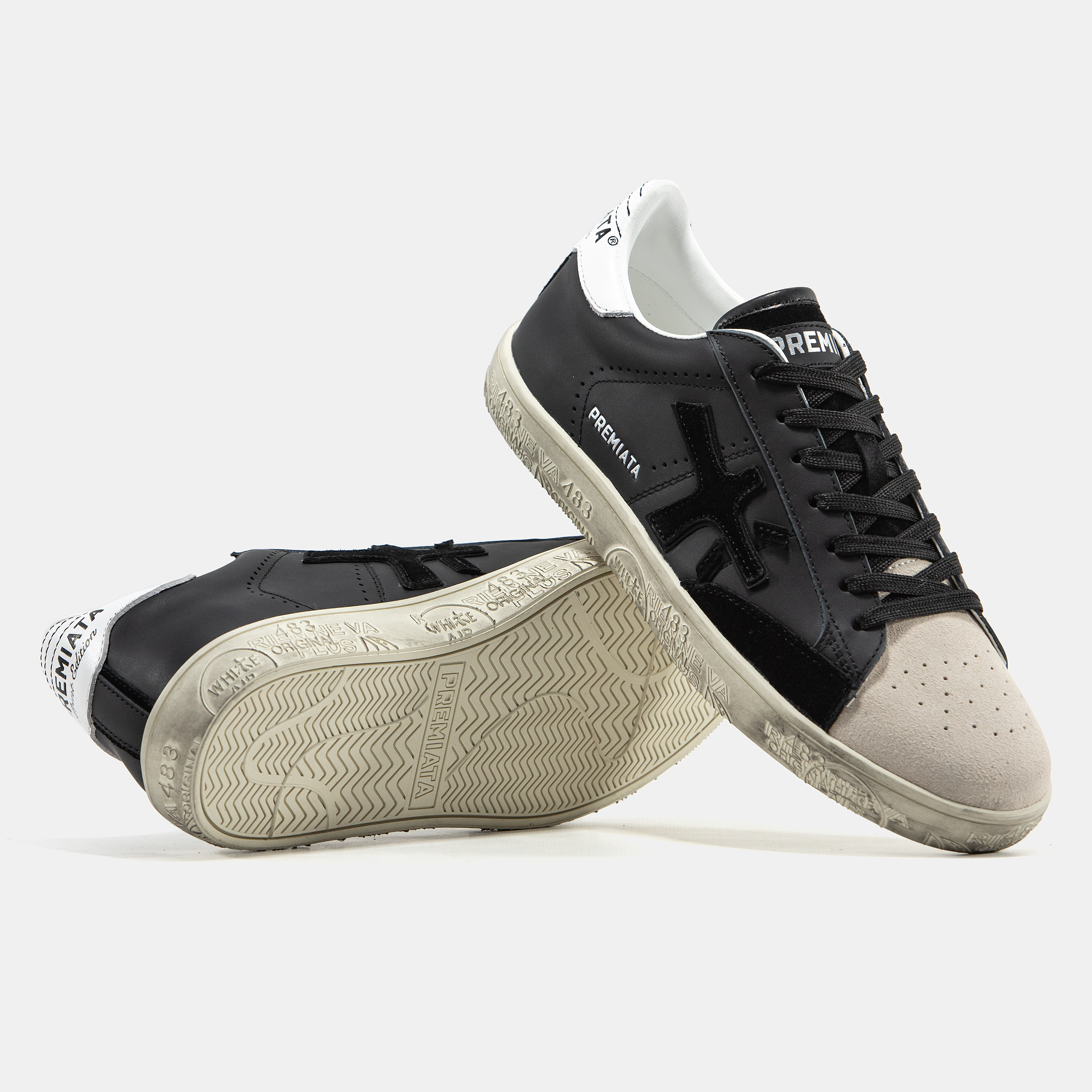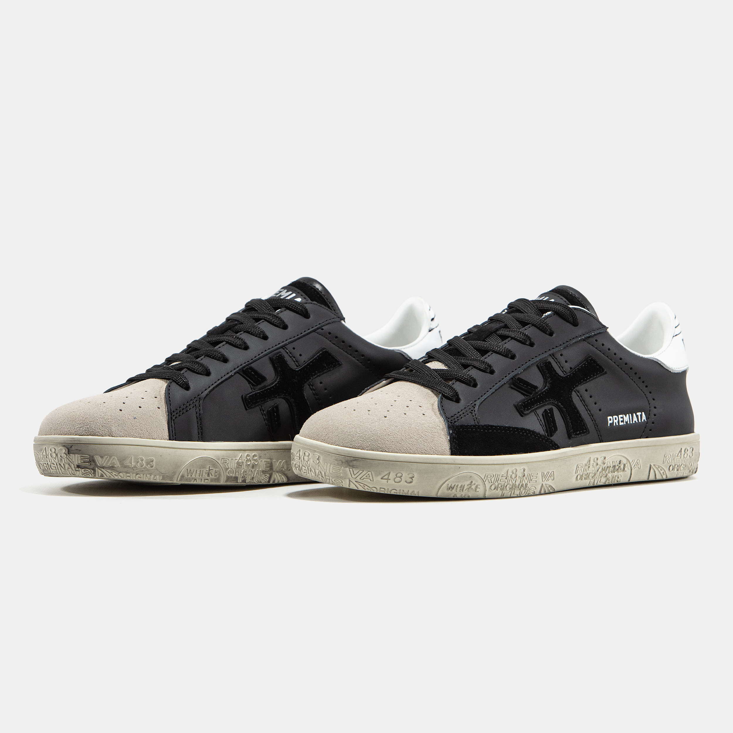 Premiata Steven Black Beige — кросівки в поєднанні чорного та бежевого кольорів з простим, стриманим дизайном. Легка підошва і комфортна посадка роблять їх зручними для щоденного носіння.