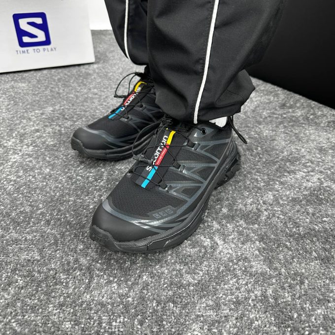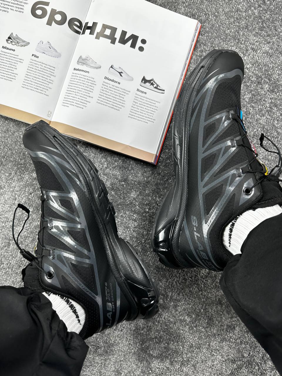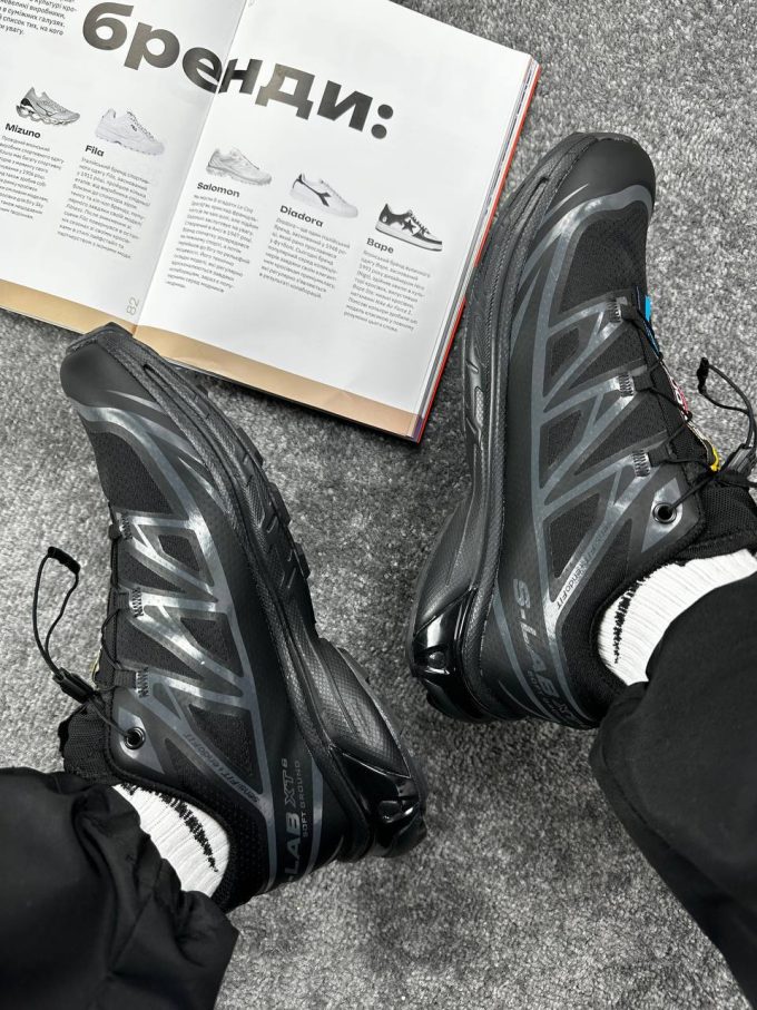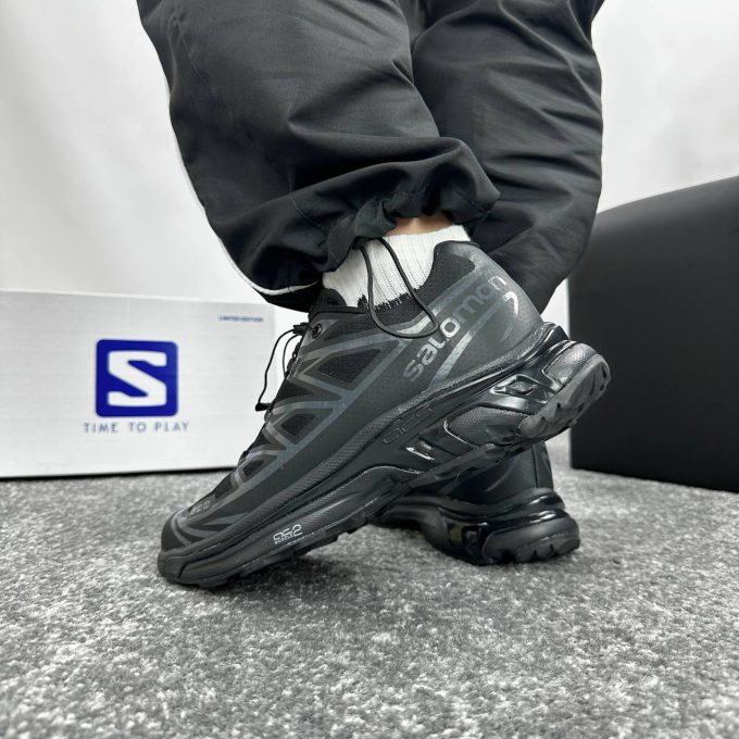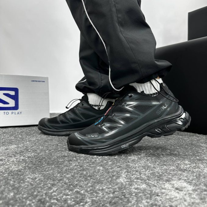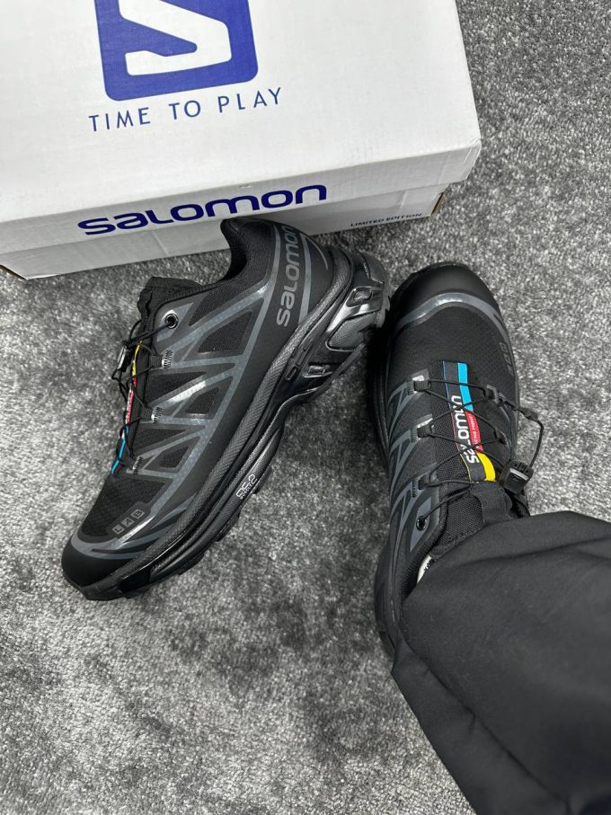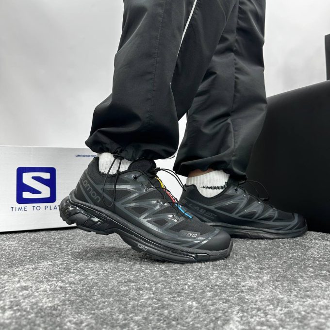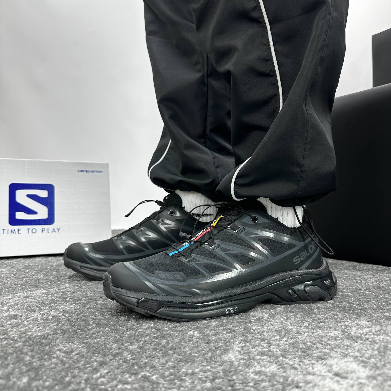 Salomon XT-6 All Black — високотехнологічні кросівки в повністю чорному кольорі, що поєднують легкість, амортизацію та надійне зчеплення для активного міського життя й пригод на пересічній місцевості.