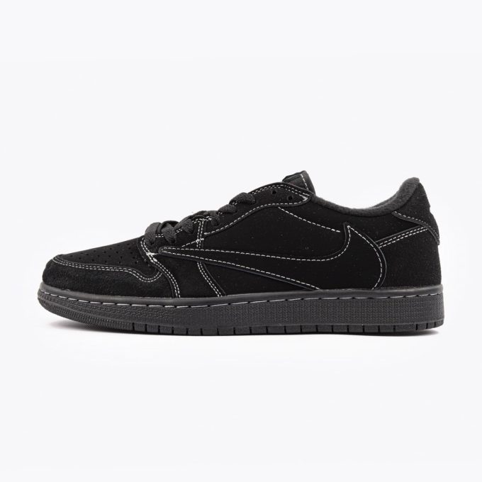 Nike Travis Scott x Air Jordan 1 Low OG ‘Phantom’ — культова колаборація у чорному кольорі з контрастною білою строчкою та фірмовим реверсним Swoosh, що надає моделі унікального характеру.