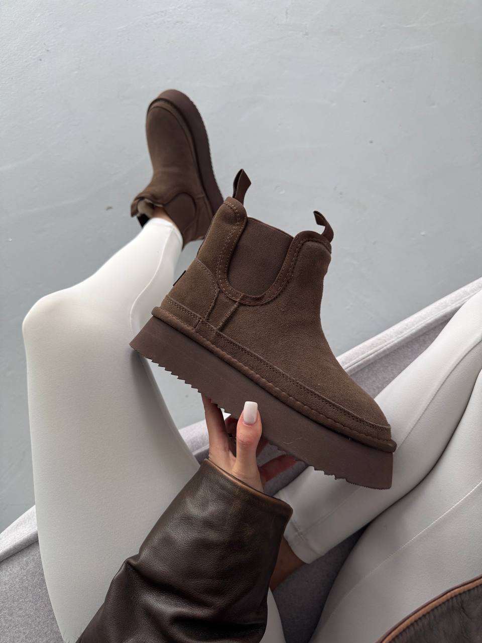 UGG Chelsea Dark Chocolate Suede — це елегантні та функціональні черевики в класичному стилі Chelsea, виконані з темно-коричневої замші.