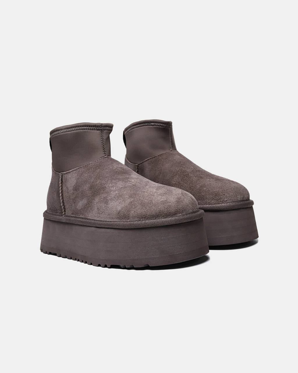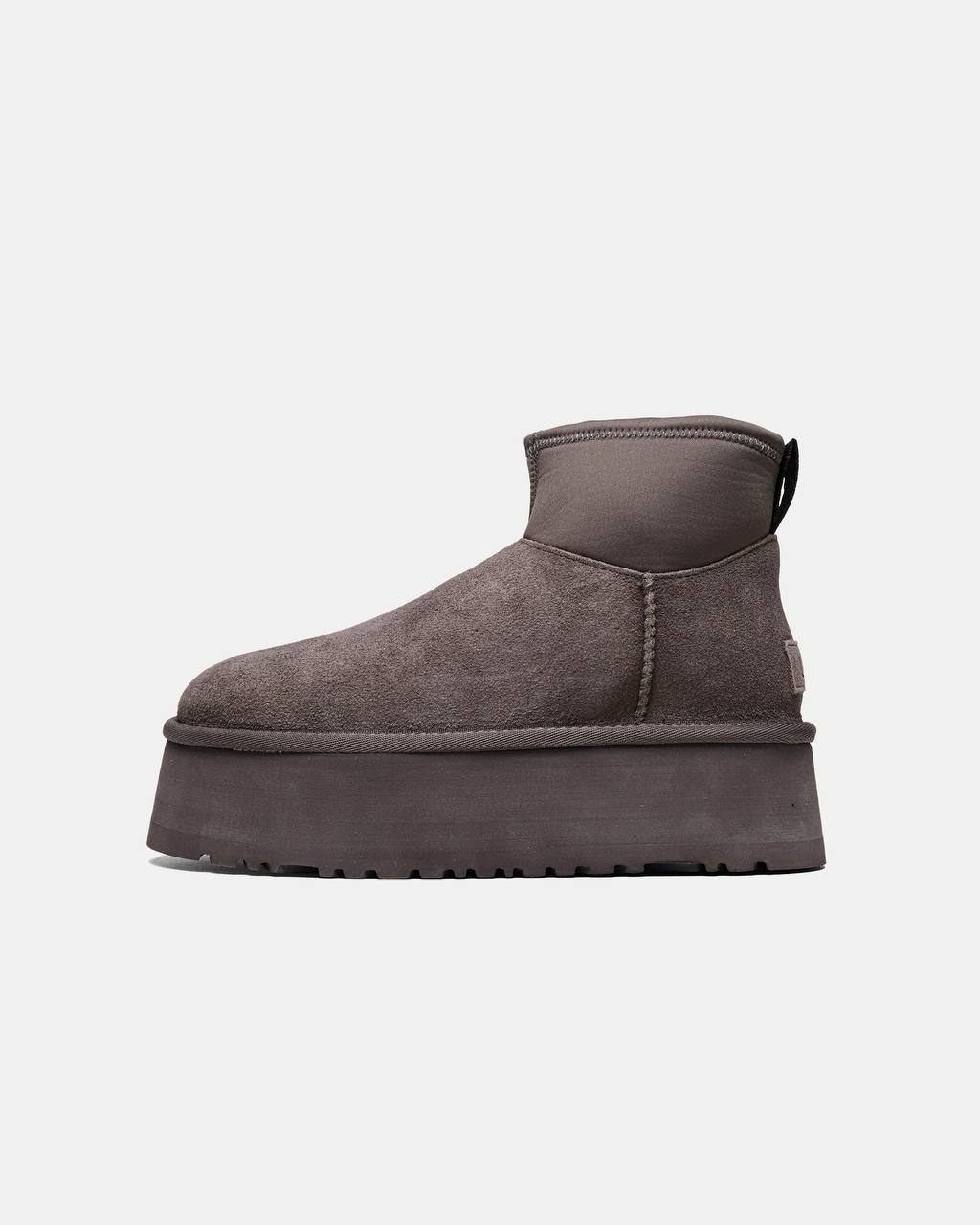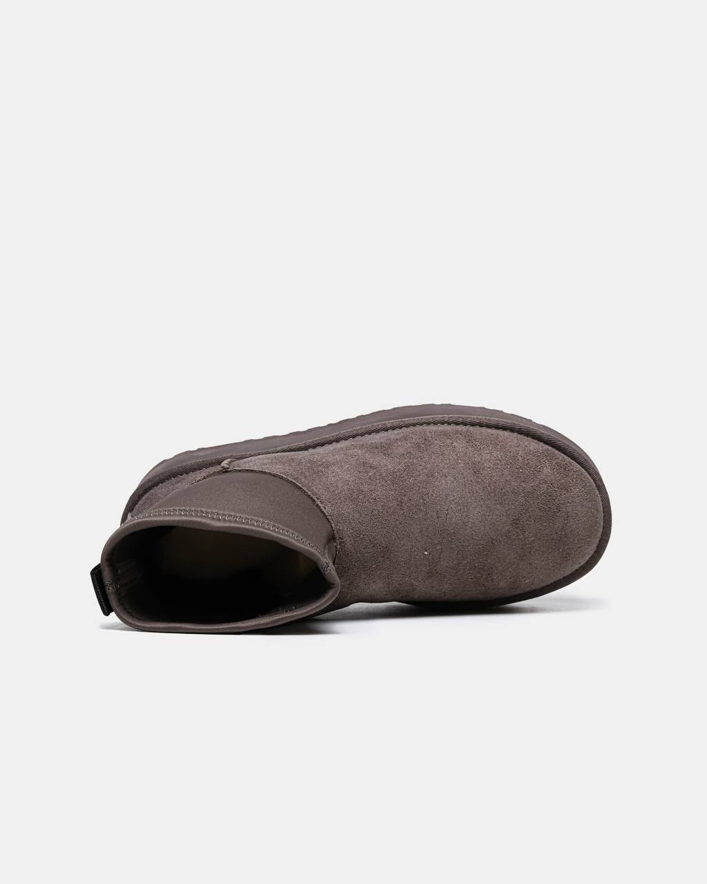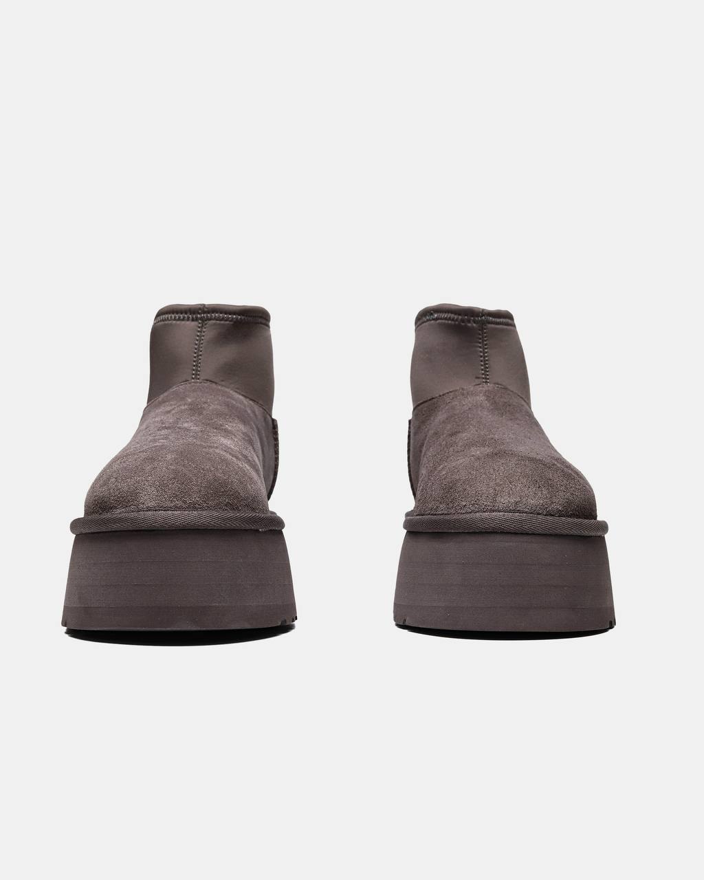 UGG Classic Mini Dipper Grey — сучасні черевики у сірому кольорі з преміальної замші, які забезпечують тепло, комфорт і стильний вигляд для повсякденного носіння.