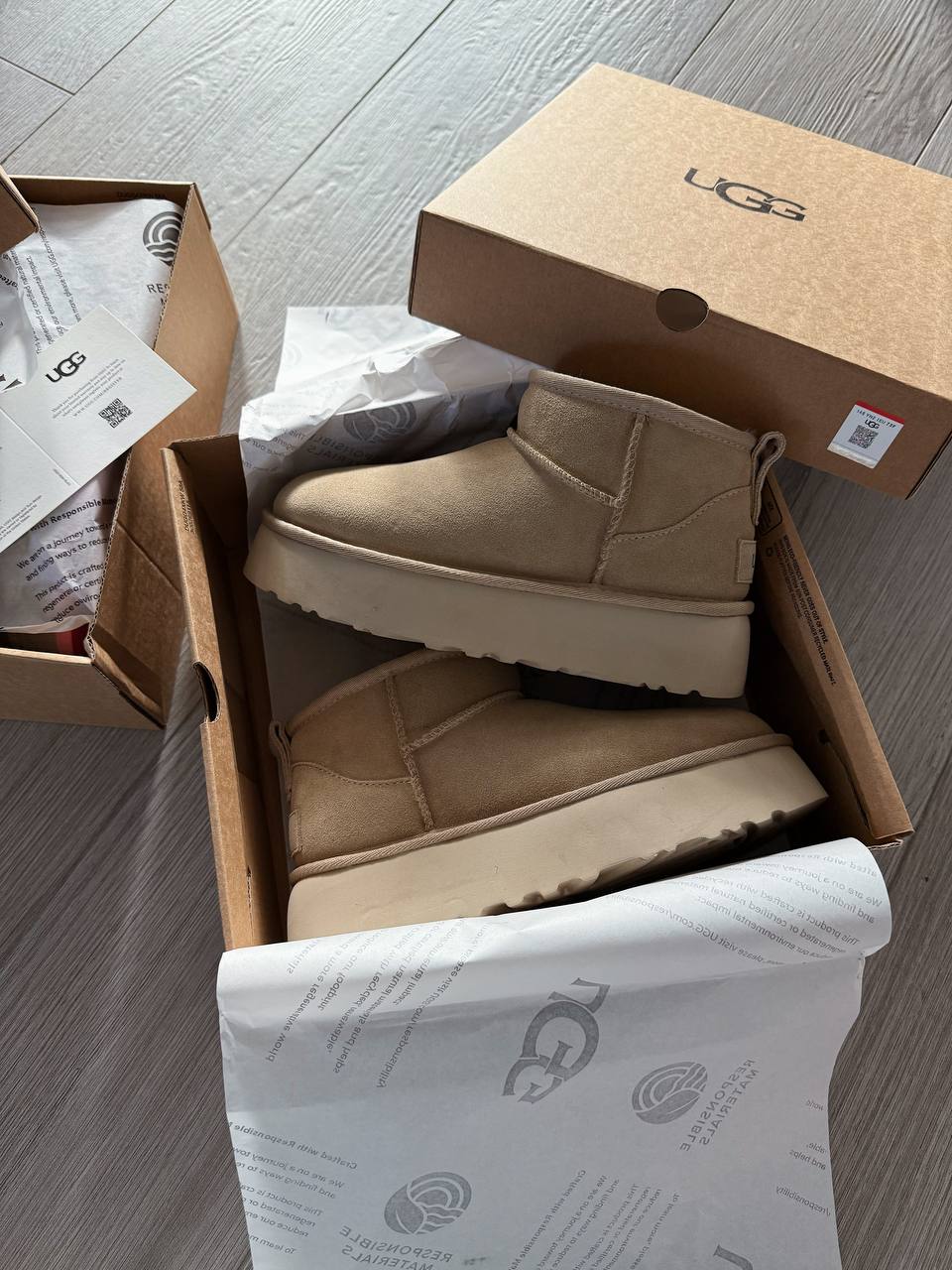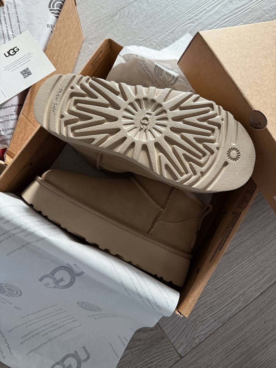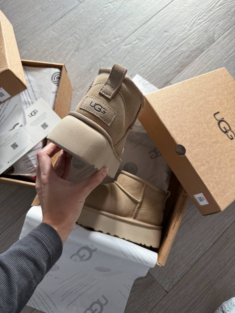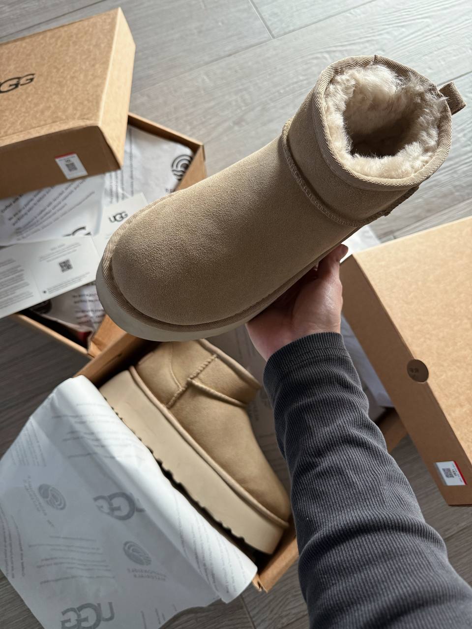 UGG Classic Ultra Mini Platform “Sand” — теплі та стильні черевики у ніжному бежевому кольорі.