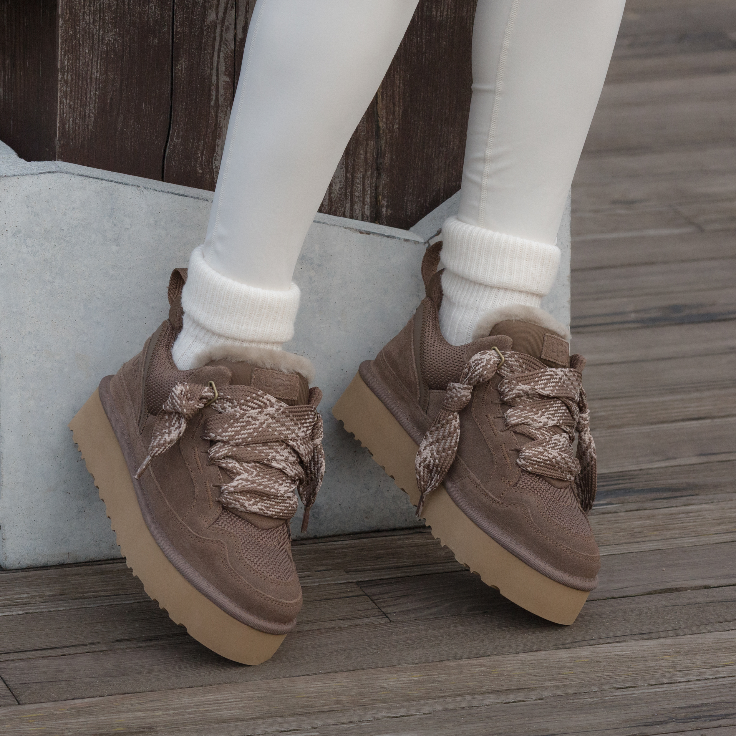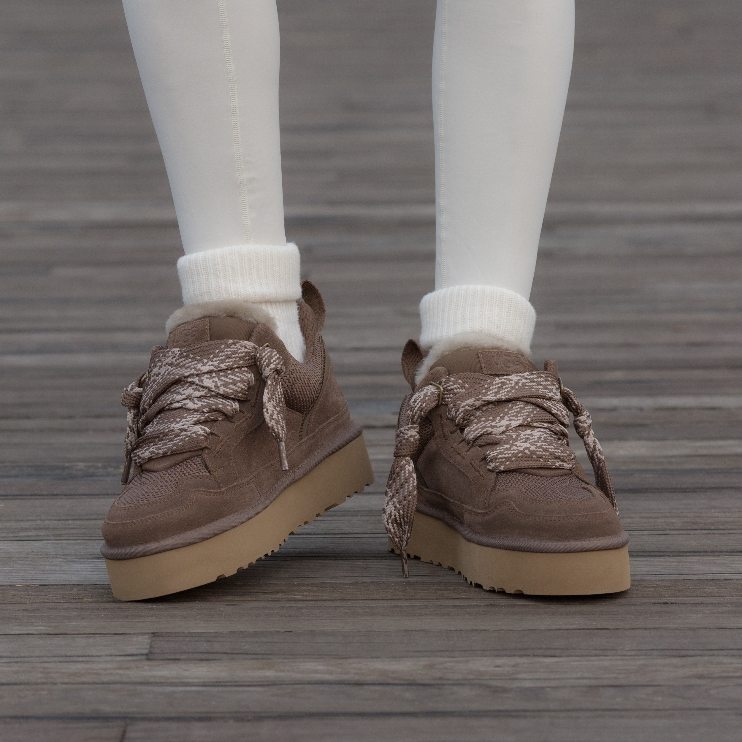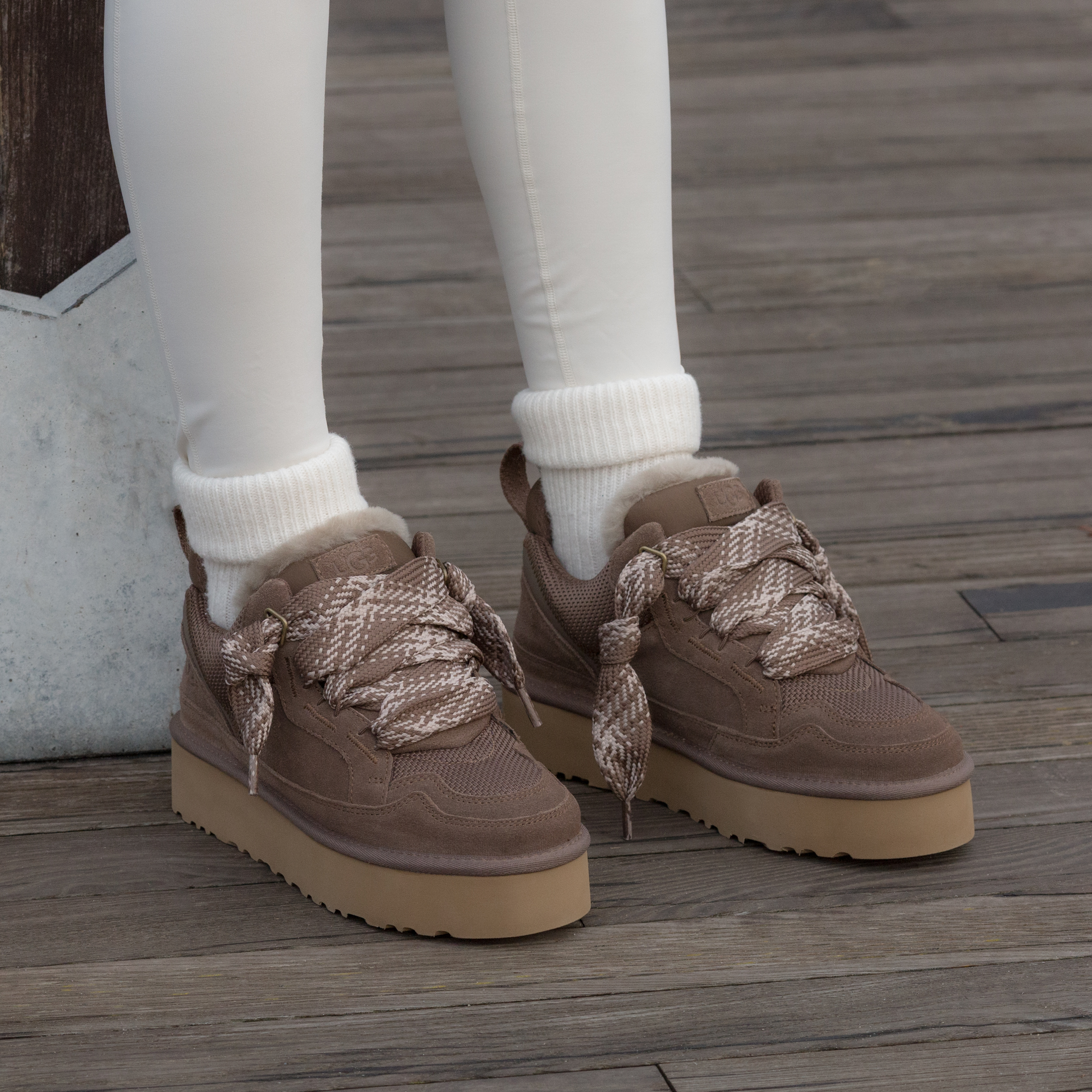 Ugg Lowmel Sneaker Platform Brown-Olive — стильна та комфортна модель на платформі в коричневих та оливкових відтінках, що поєднує сучасний дизайн і універсальність для щоденного носіння.