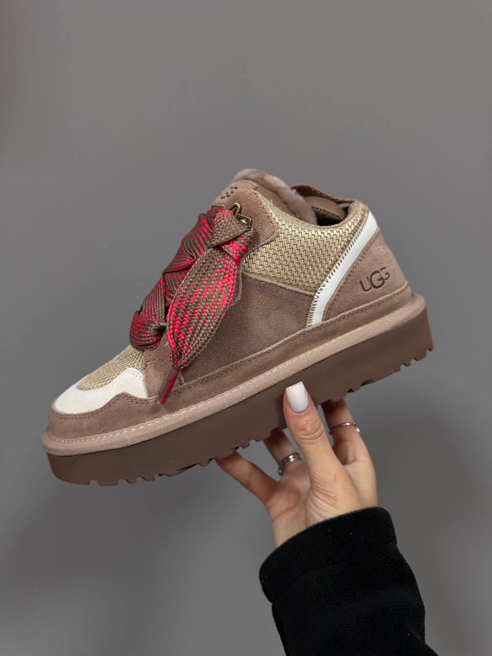 UGG Lowmel Sneakers Brown/Red — стильні кросівки у поєднанні коричневого та червоного кольорів, що поєднують комфорт і сучасний дизайн.