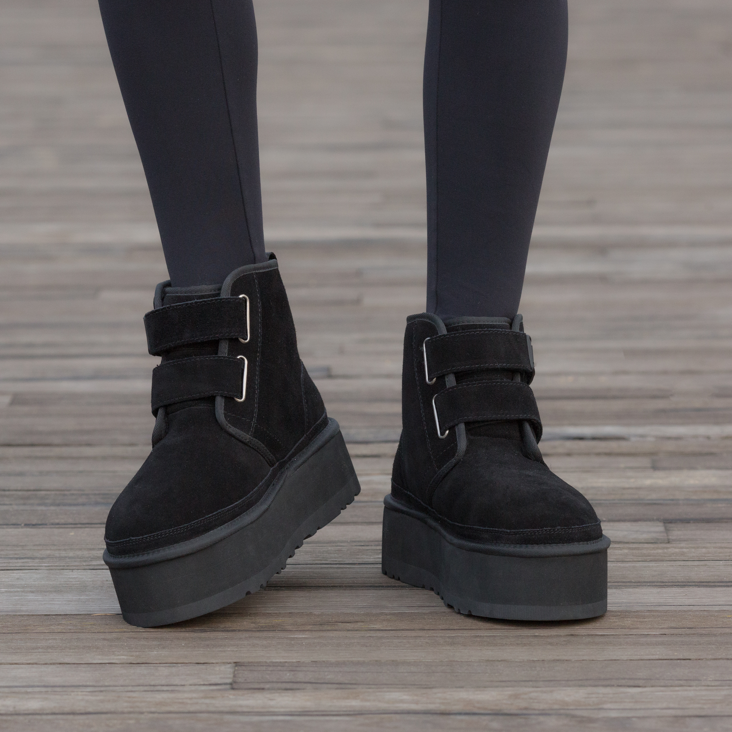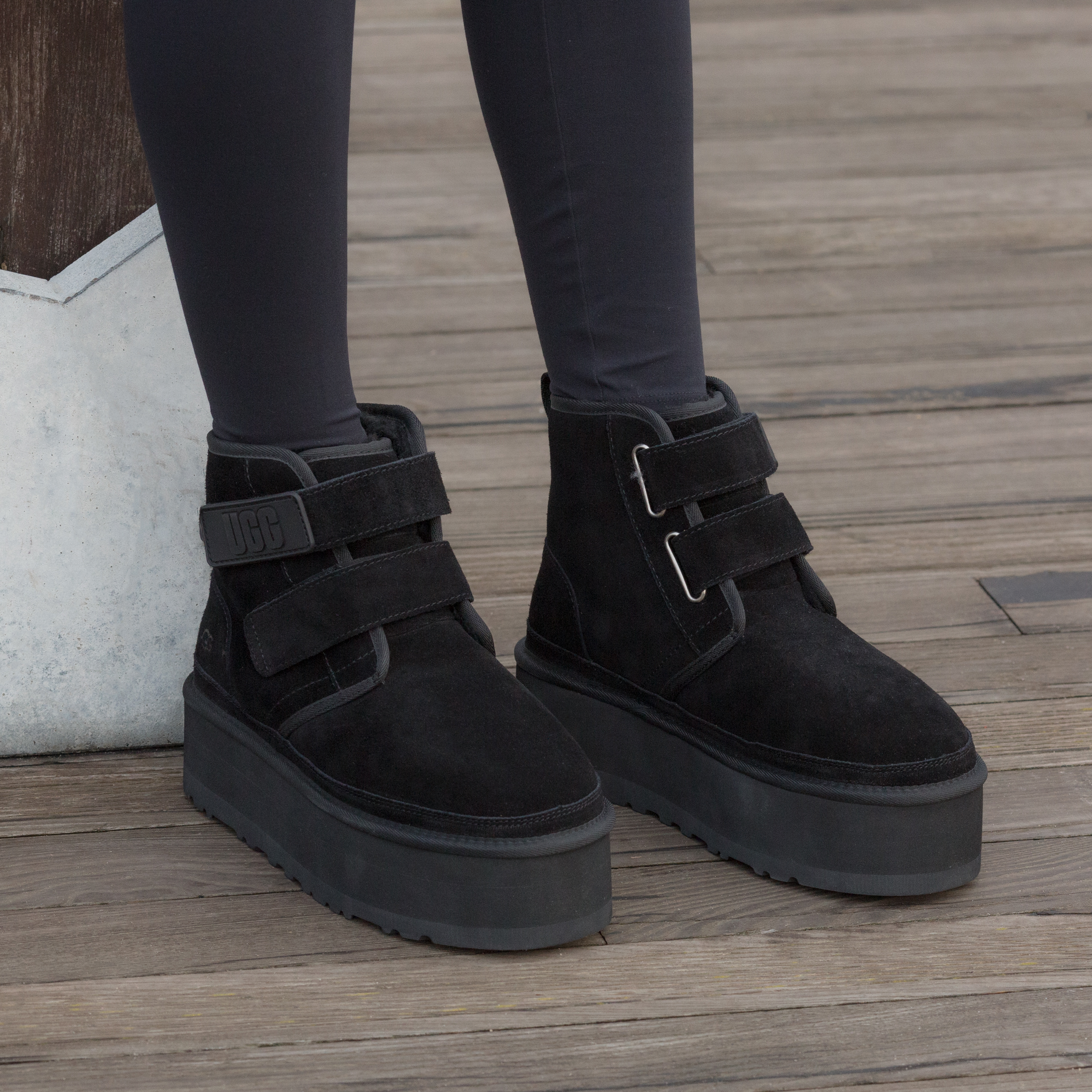UGG Neumel Platform Chukka Black — стильна та зручна модель на платформі, що поєднує сучасний дизайн, комфорт і універсальний щоденний вигляд.