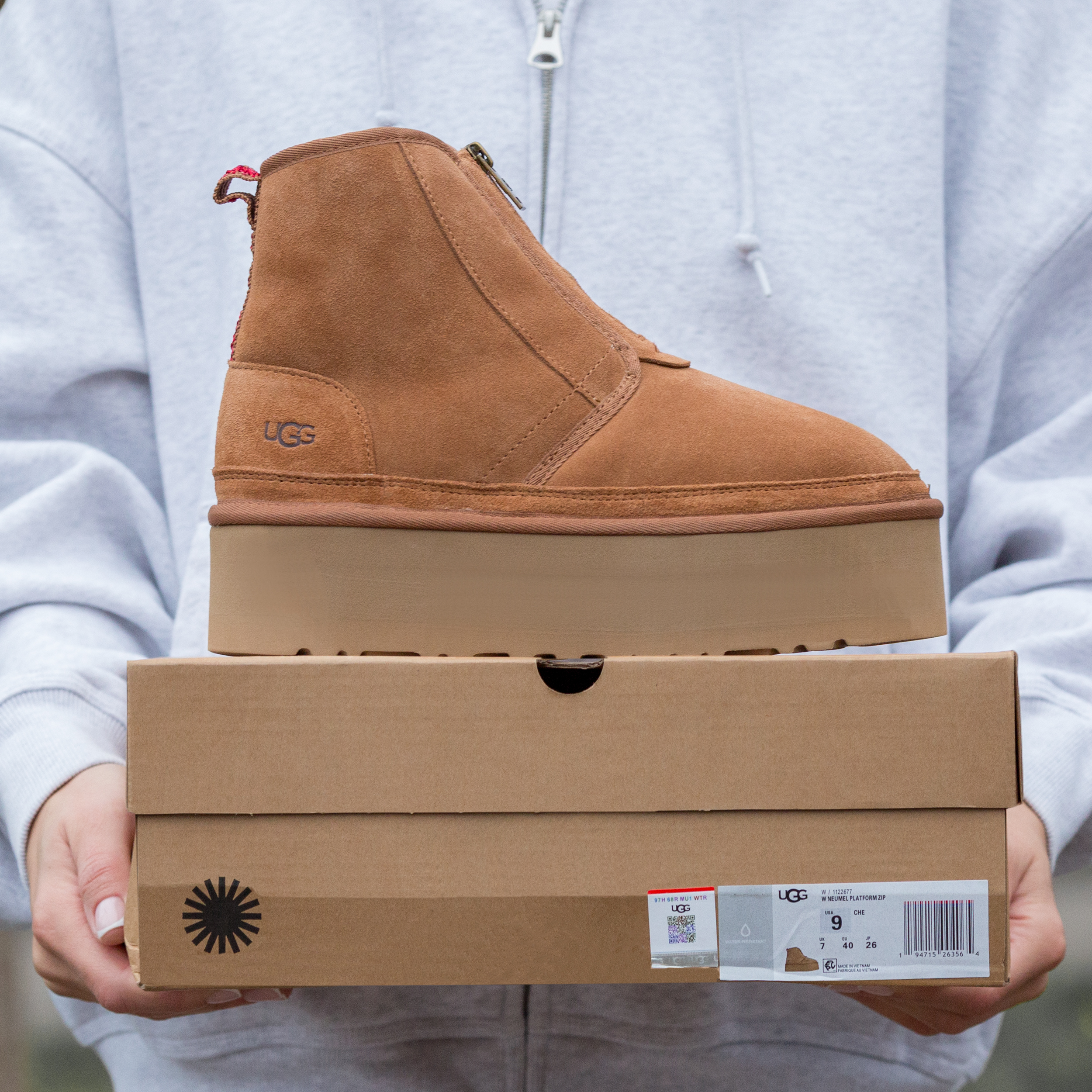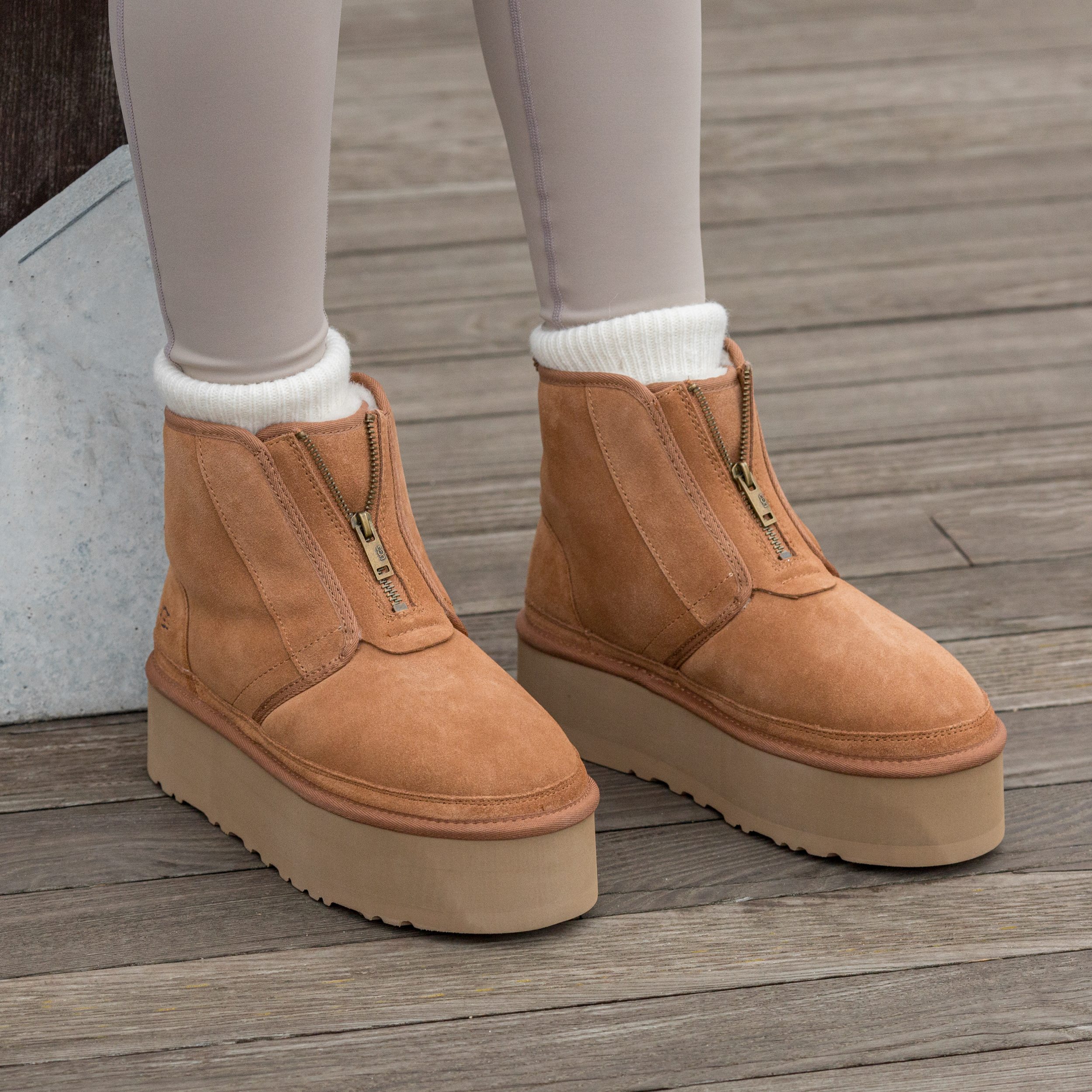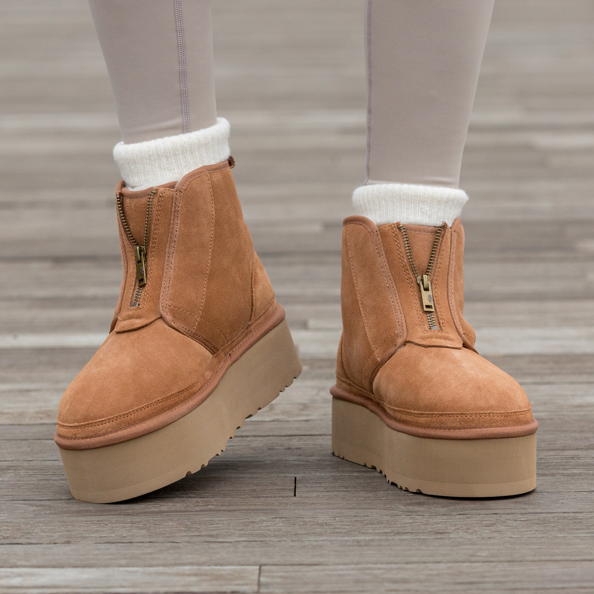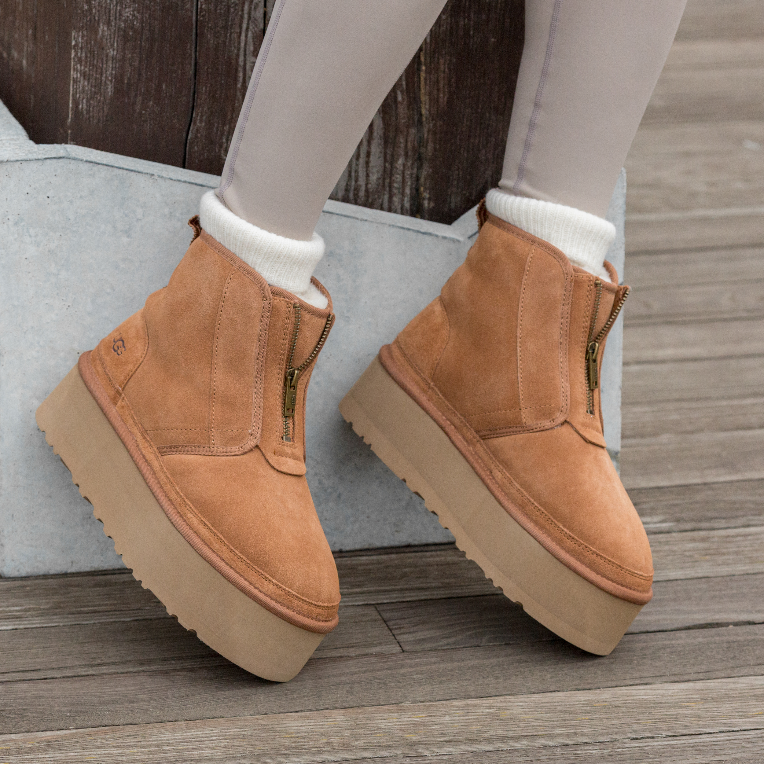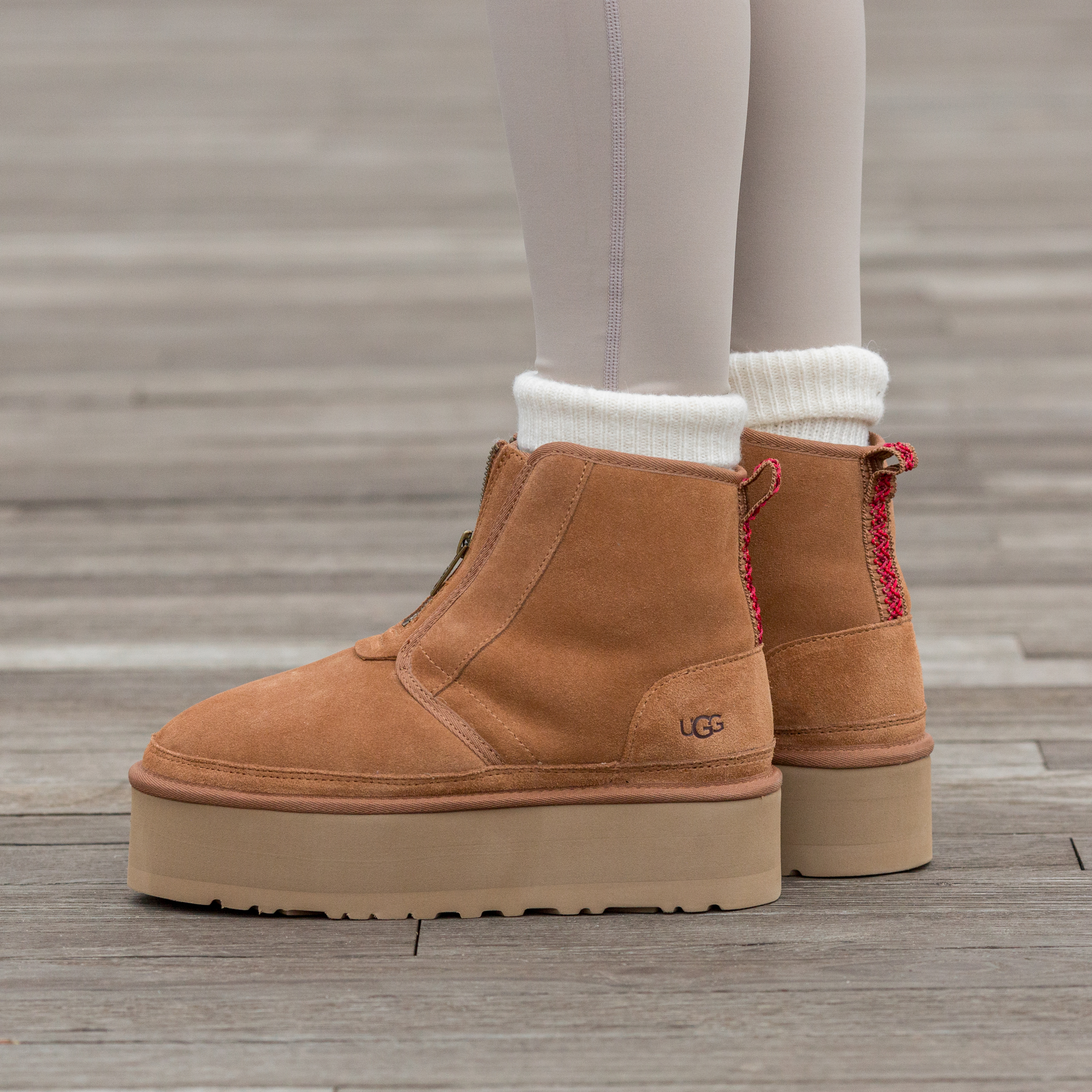 UGG Neumel Platform Zip Slipper Chestnut — це теплі та стильні повсякденні сліпери на платформі, створені для комфорту й зручності в холодну пору.