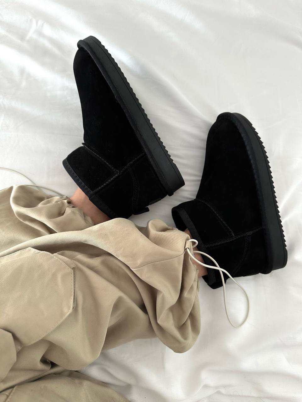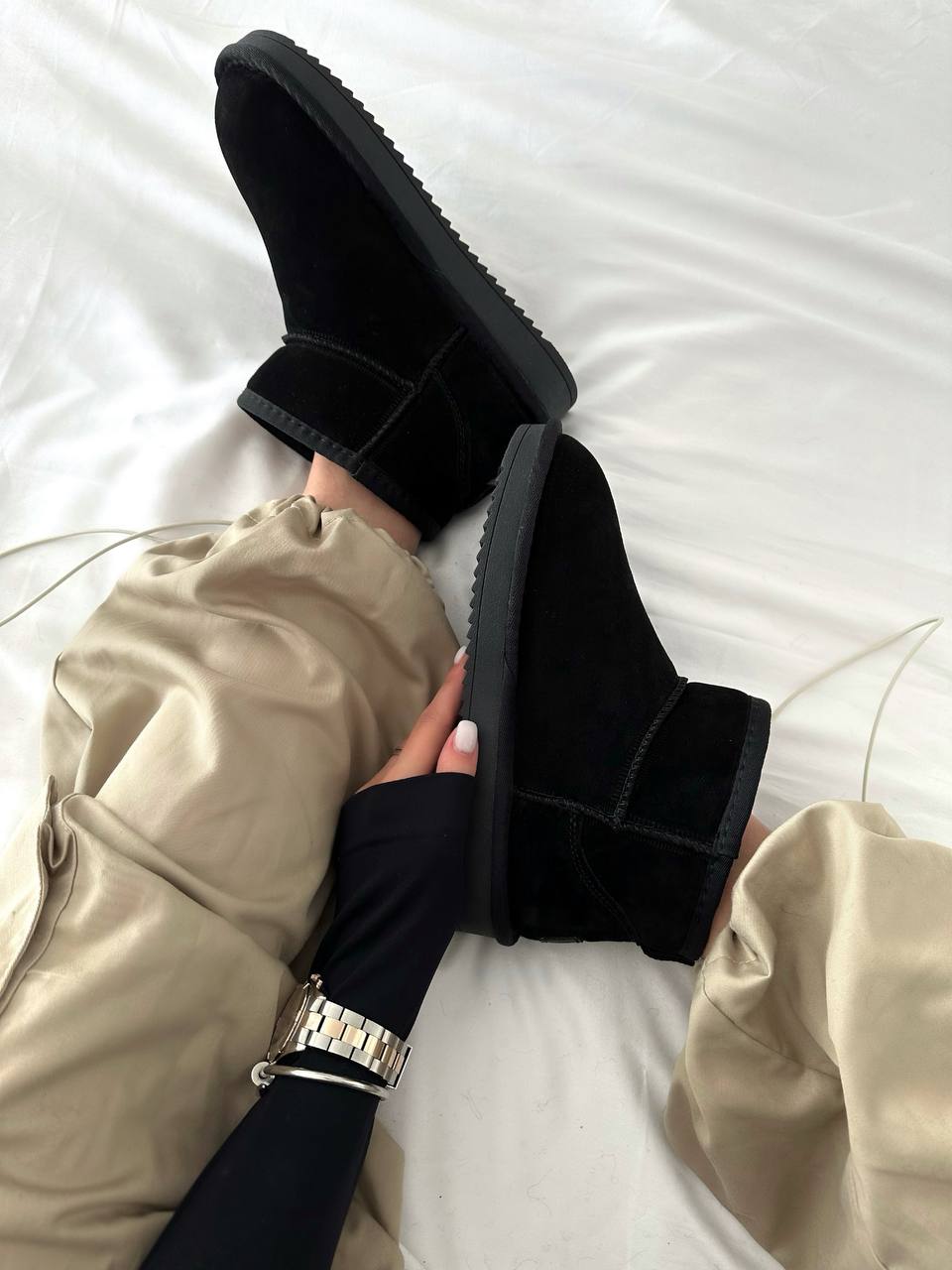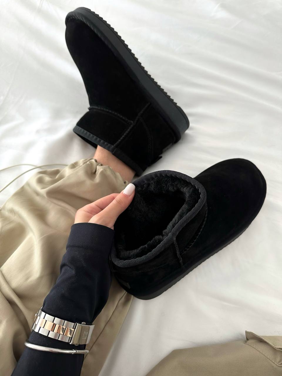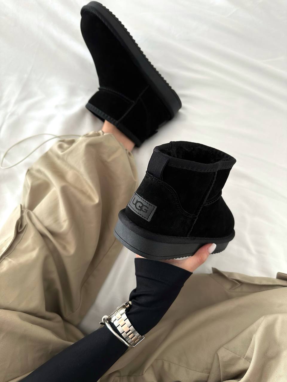 UGG Ultra Mini Black – м’які та зручні зимові чоботи чорного кольору. Усередині – тепле хутро, яке добре зігріває в холодну погоду. Низький силует і легка підошва роблять їх комфортними для щоденного носіння.