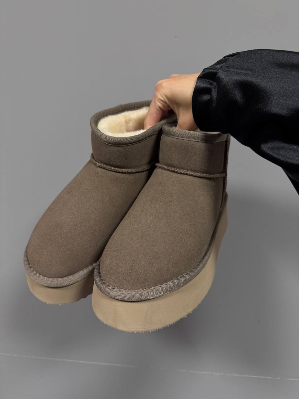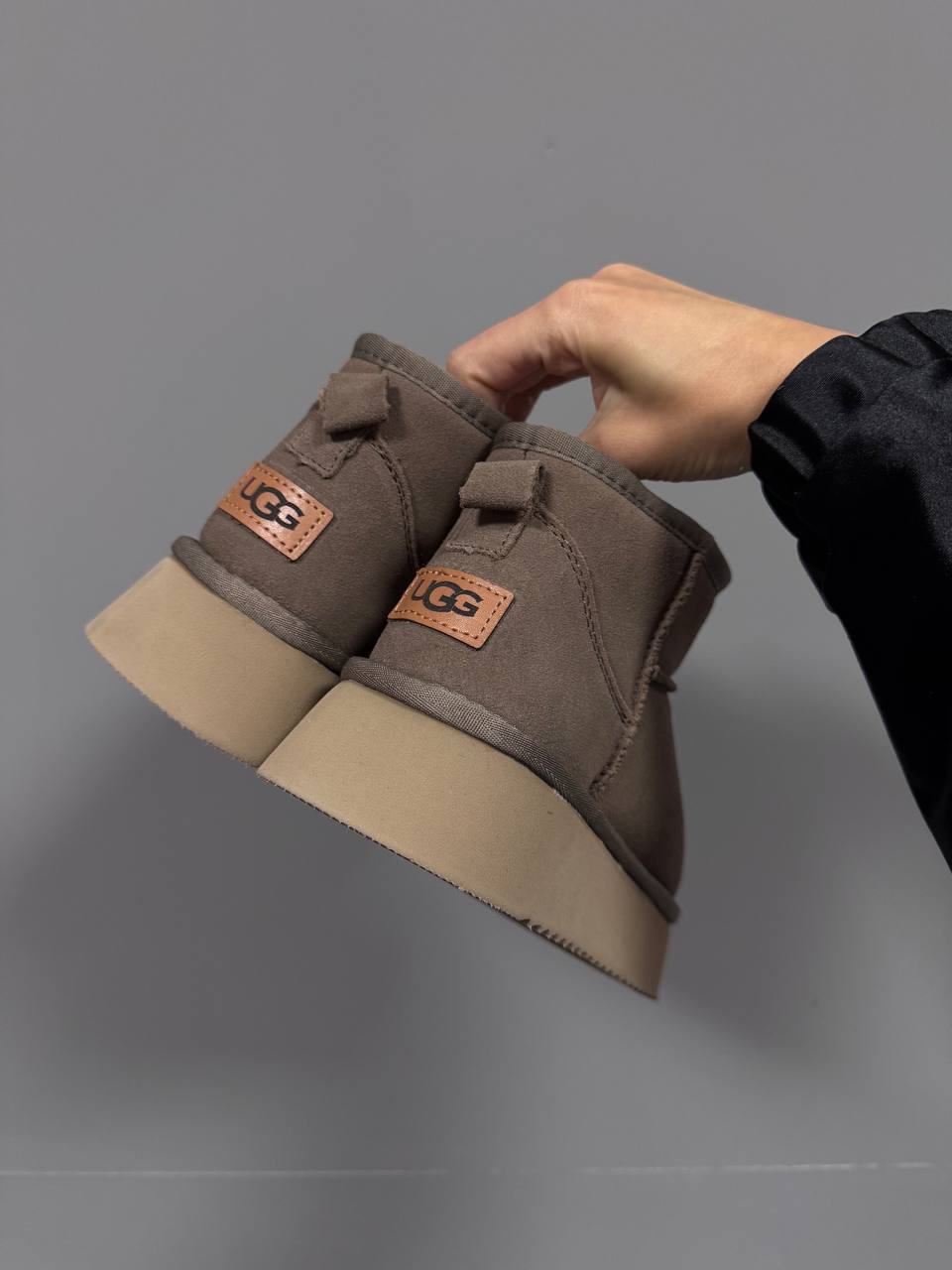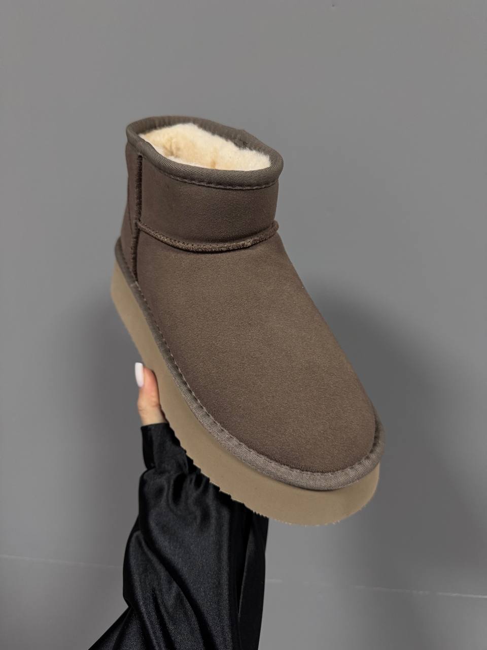 UGG Ultra Mini Platform Cappuccino — зручні і модні черевики‑ботінки з платформою. М’який верх із тканини, приємний на дотик, платформа трохи додає висоти.